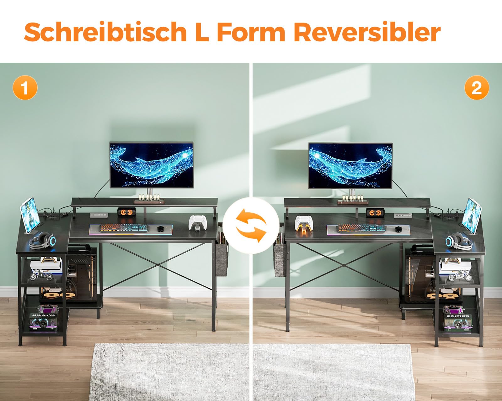 Ja, das L-förmige Design ist reversibel. Sie können die kürzere Seite des Tisches flexibel entweder links oder rechts montieren, je nachdem, wie es am besten in Ihr Zimmer passt.
