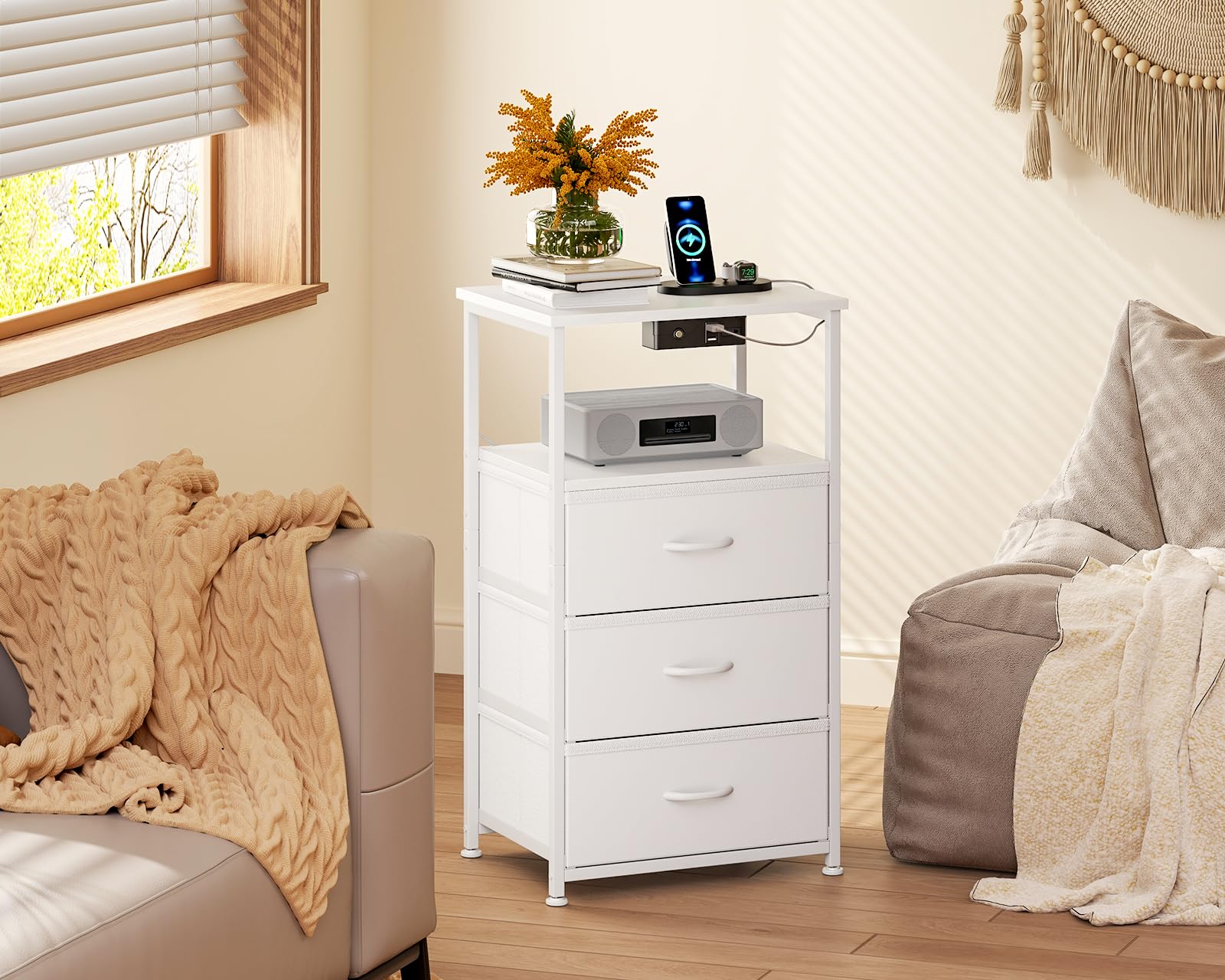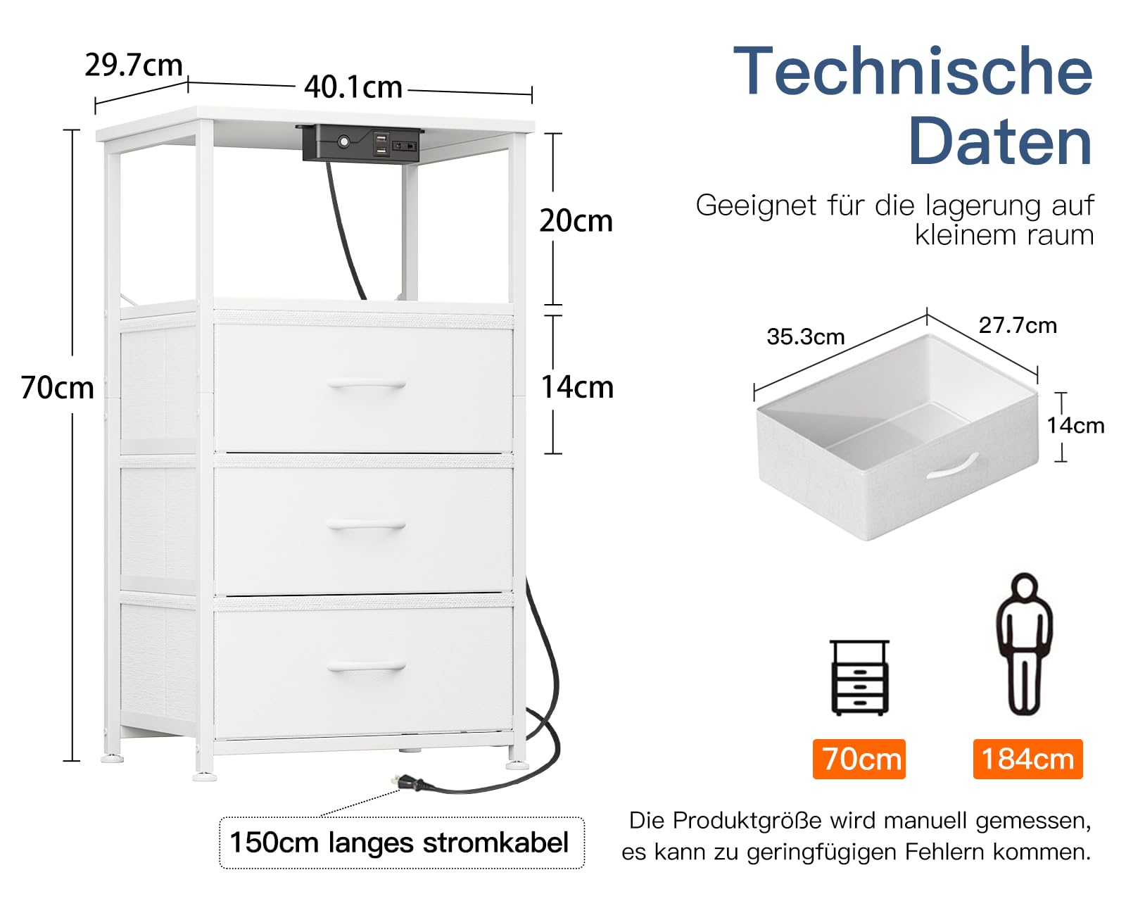- Durchdachter Stauraum: Eine Kombination aus einem offenen Ablagefach für schnellen Zugriff und drei geräuscharmen Stoffschubladen für diskrete Aufbewahrung.