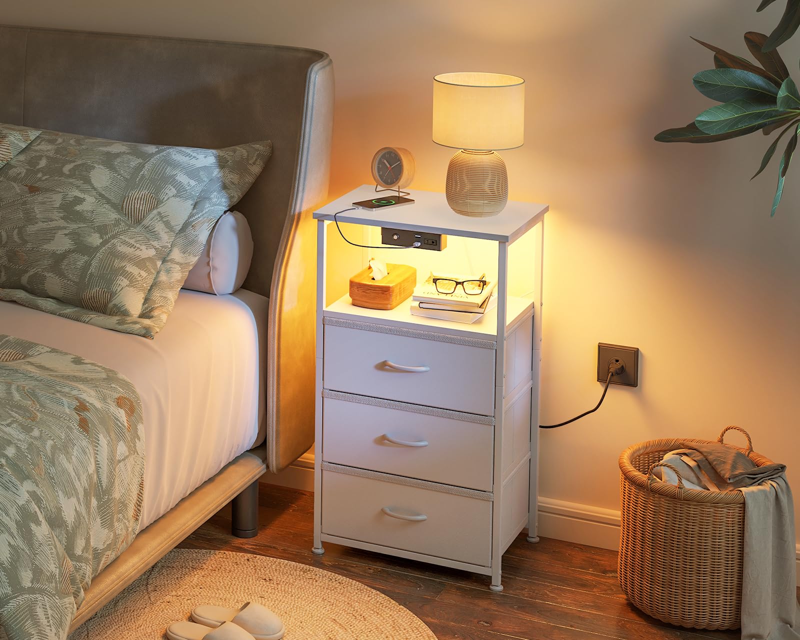 Coleshome Nachttisch 2er Set mit Steckdose, USB & LED-Licht