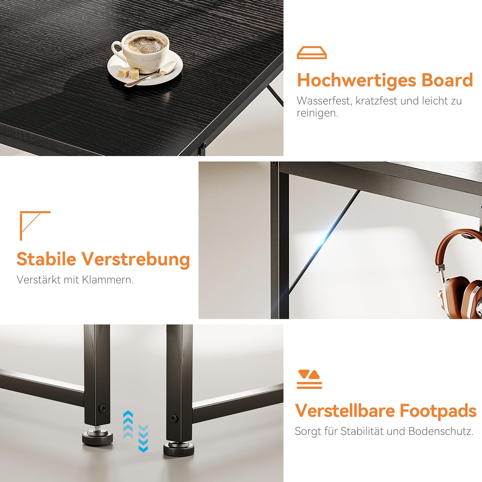 Der Aufbau gestaltet sich einfach und schnell. Eine verständliche Anleitung und klar beschriftete Teile sind im Lieferumfang enthalten, sodass Sie den Schreibtisch mühelos selbst montieren können.