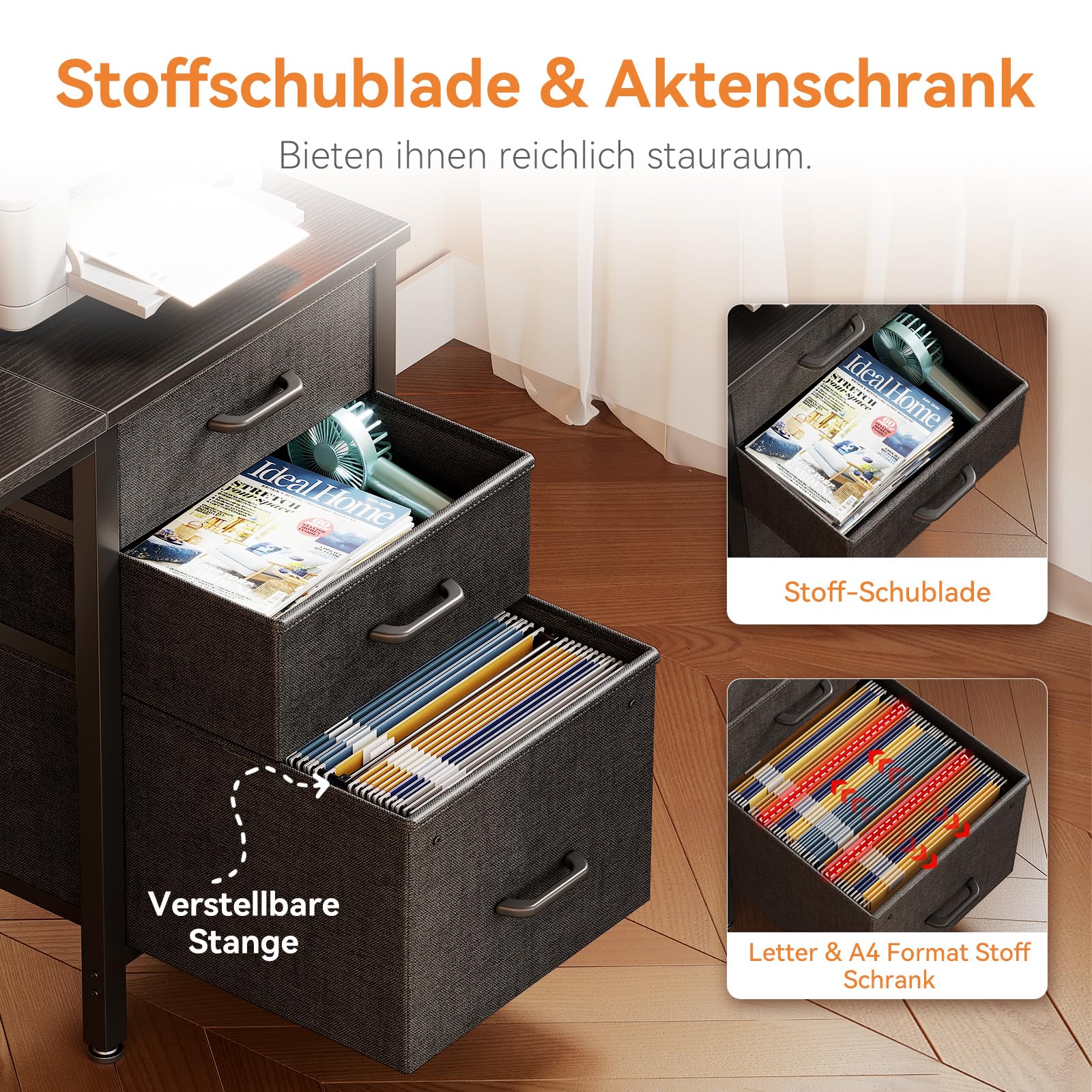 - Integrierter Stauraum: Drei Stoffschubladen für Büromaterial und Unterlagen.