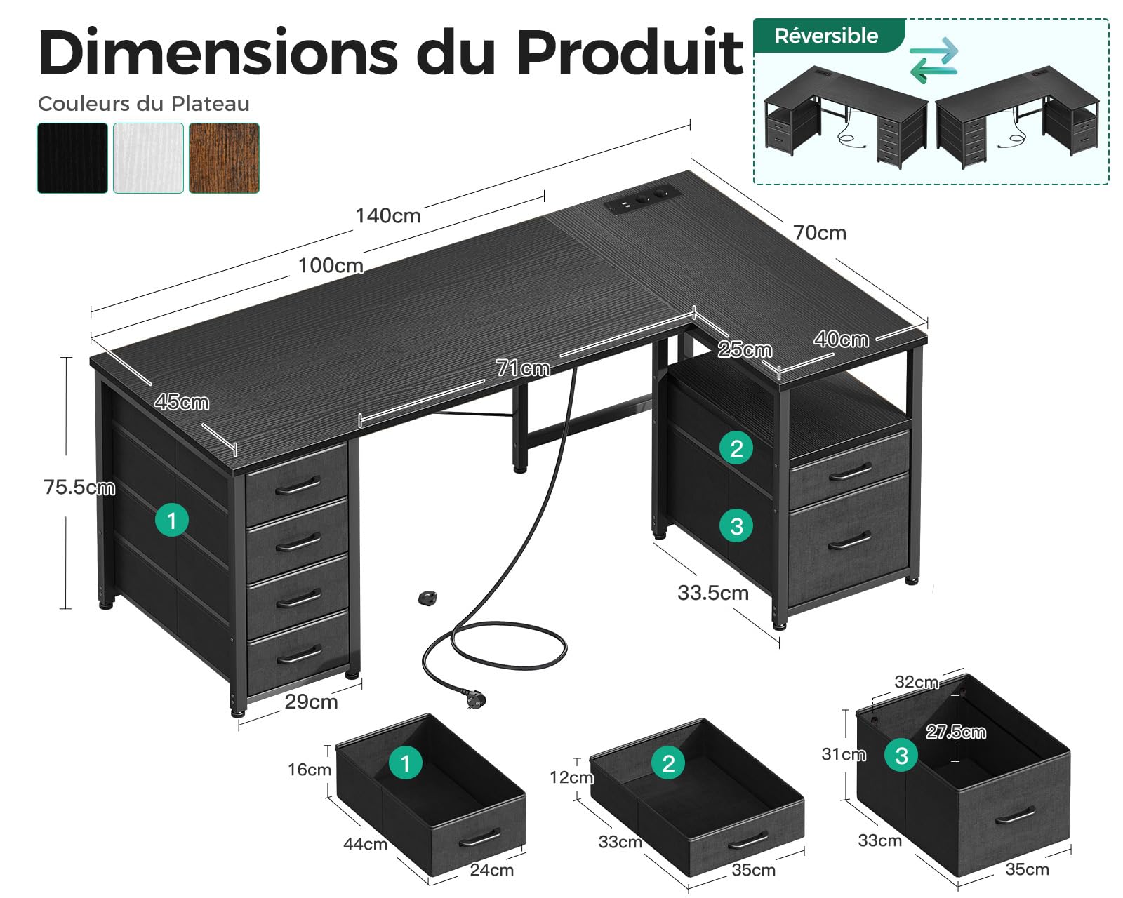- Flexibles L-Design: Das umkehrbare Design ermöglicht es, die Schubladenseite links oder rechts zu montieren, passend zu Ihrer Raumsituation.
