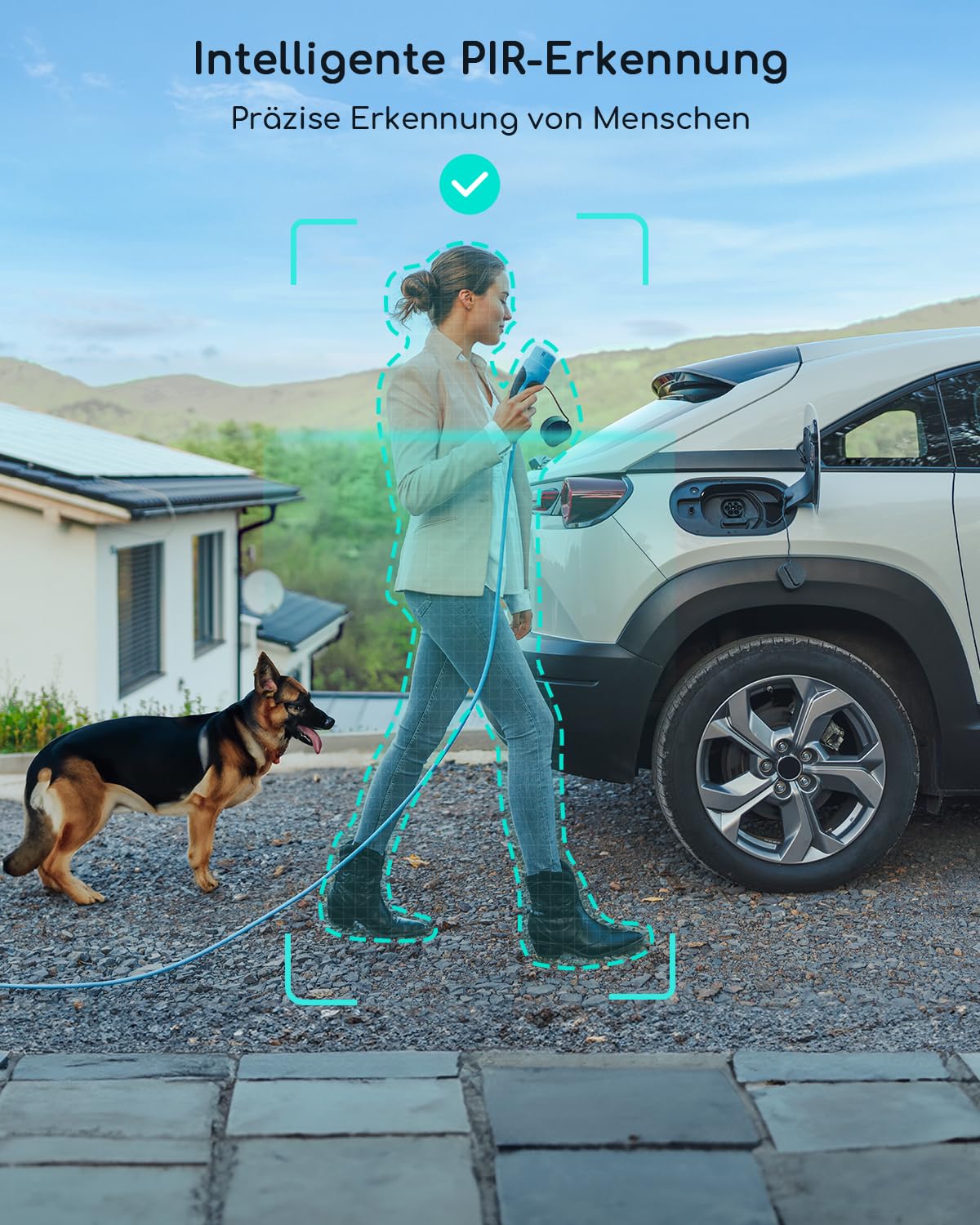 Die Kamera nutzt einen intelligenten PIR-Sensor, der präzise auf Körperwärme reagiert, um Fehlalarme durch z.B. Insekten oder Blätter deutlich zu reduzieren. Zusätzlich verfügen die Kameras über Zwei-Wege-Audio, sodass Sie über die App auf Ihrem Mobiltelefon hören und direkt mit Personen vor der Kamera sprechen können.