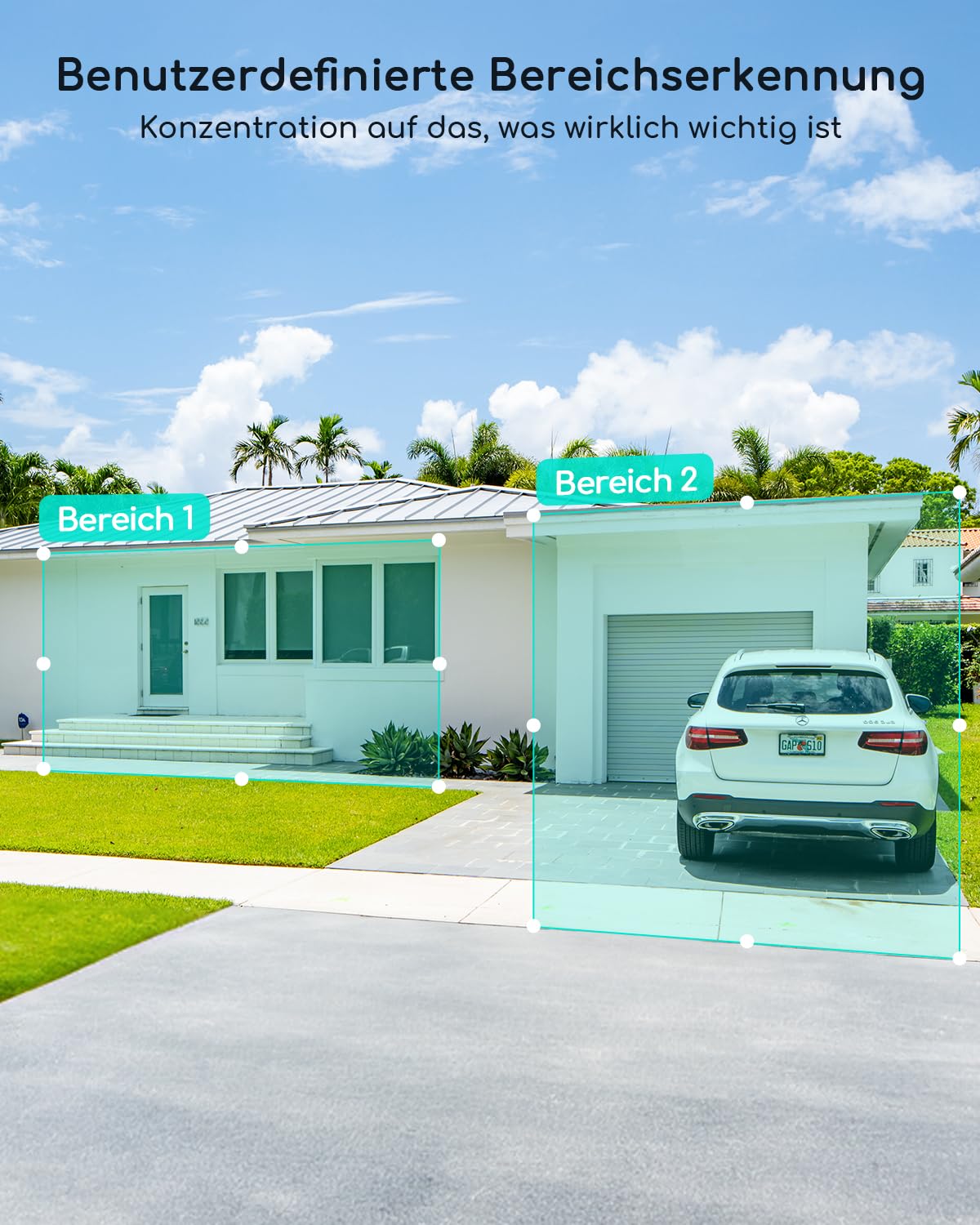 Die fortschrittliche PIR-Erkennung minimiert unnötige Benachrichtigungen und informiert Sie nur bei relevanten Ereignissen. Die hohe 2K-Auflösung, ergänzt durch die farbige Nachtsicht, stellt sicher, dass Sie Tag und Nacht klare und aussagekräftige Aufnahmen erhalten. Dies liefert im Ernstfall wertvolle Beweise und erhöht Ihre Sicherheit spürbar.