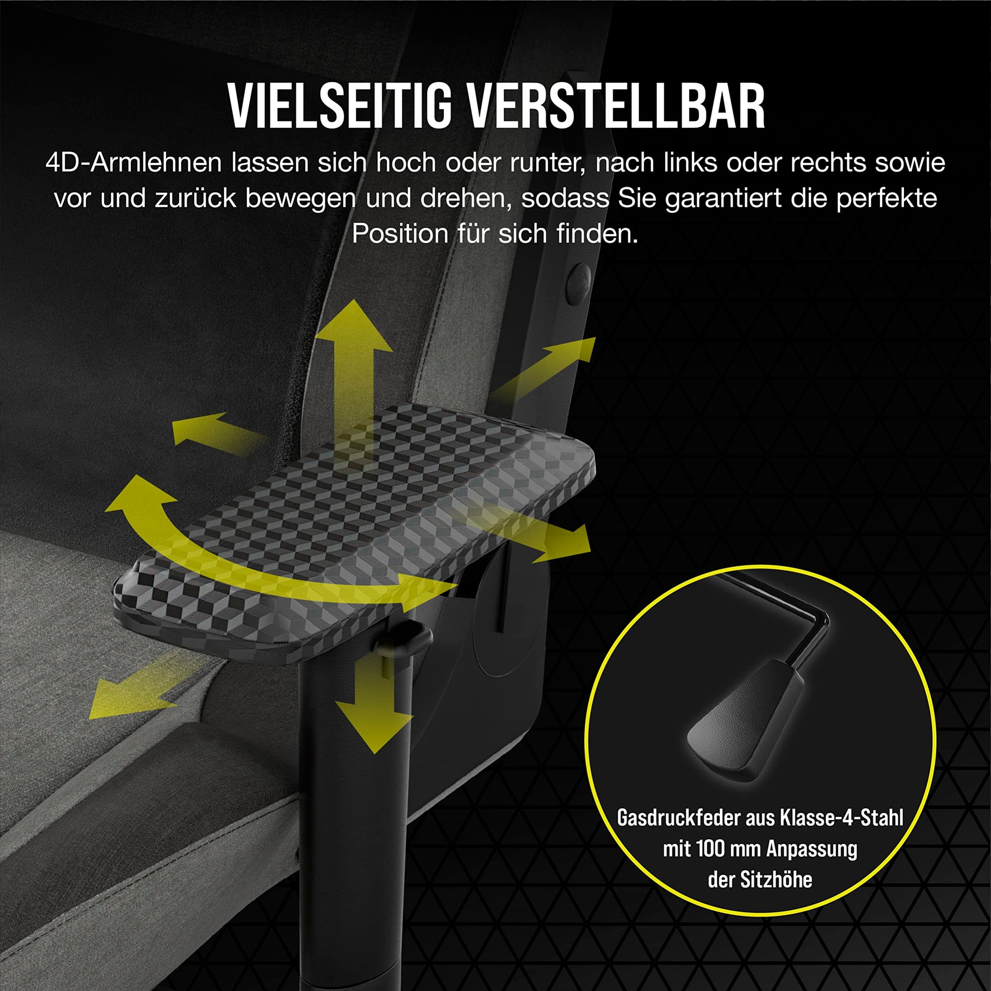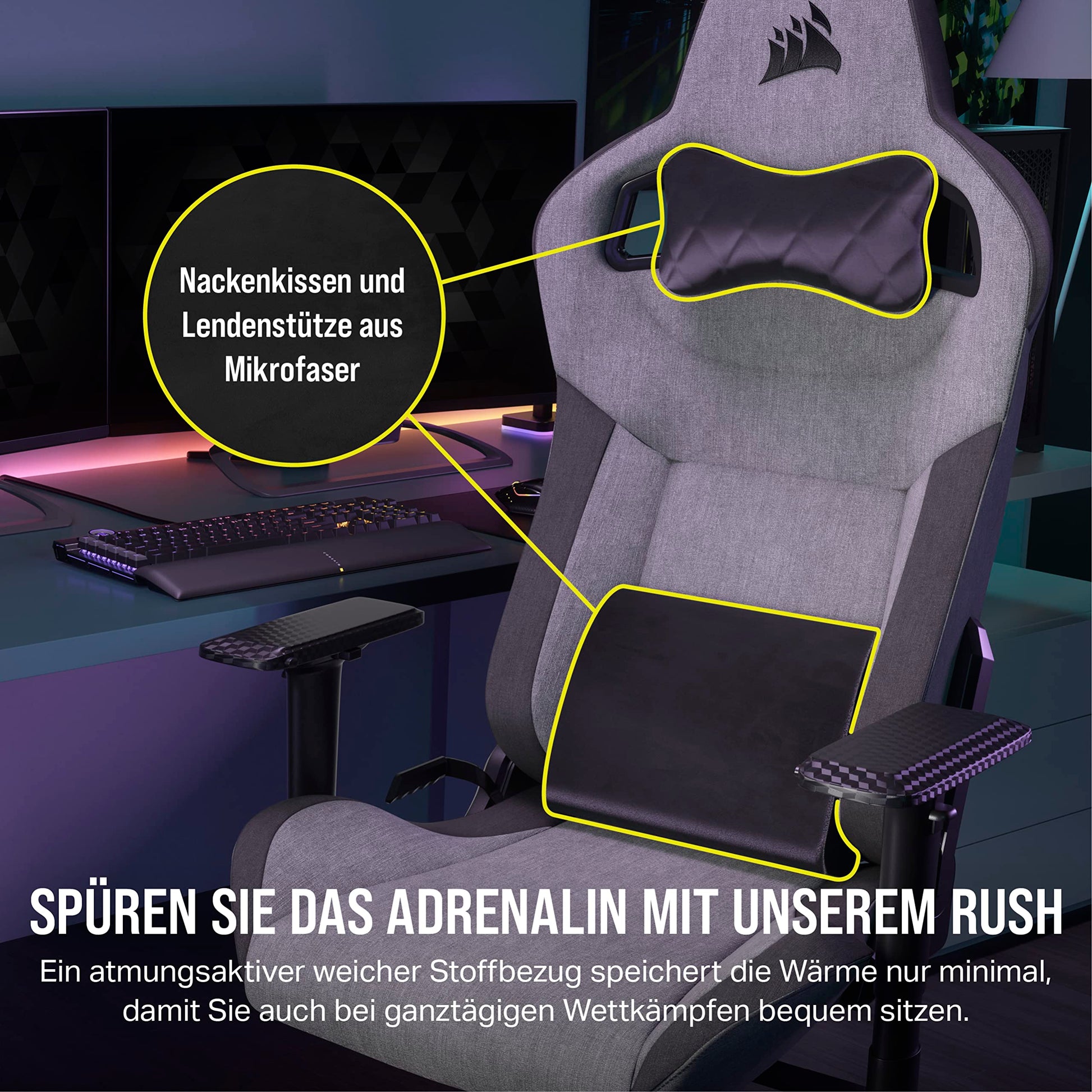 Corsair T3 RUSH Gaming Stuhl Stoffbezug Schwarz/Holzkohle