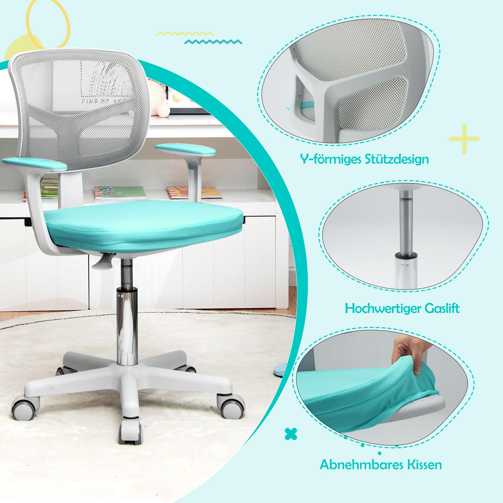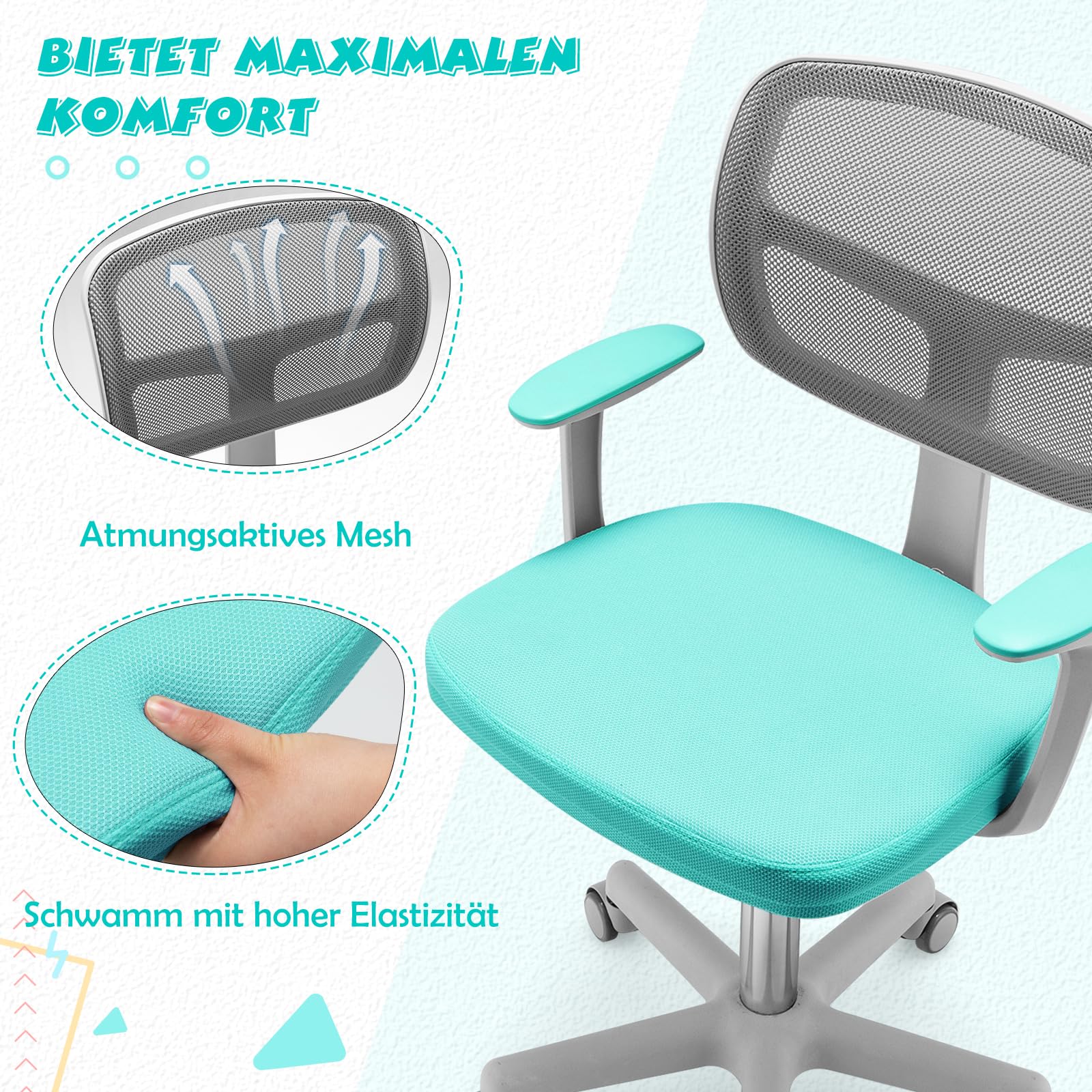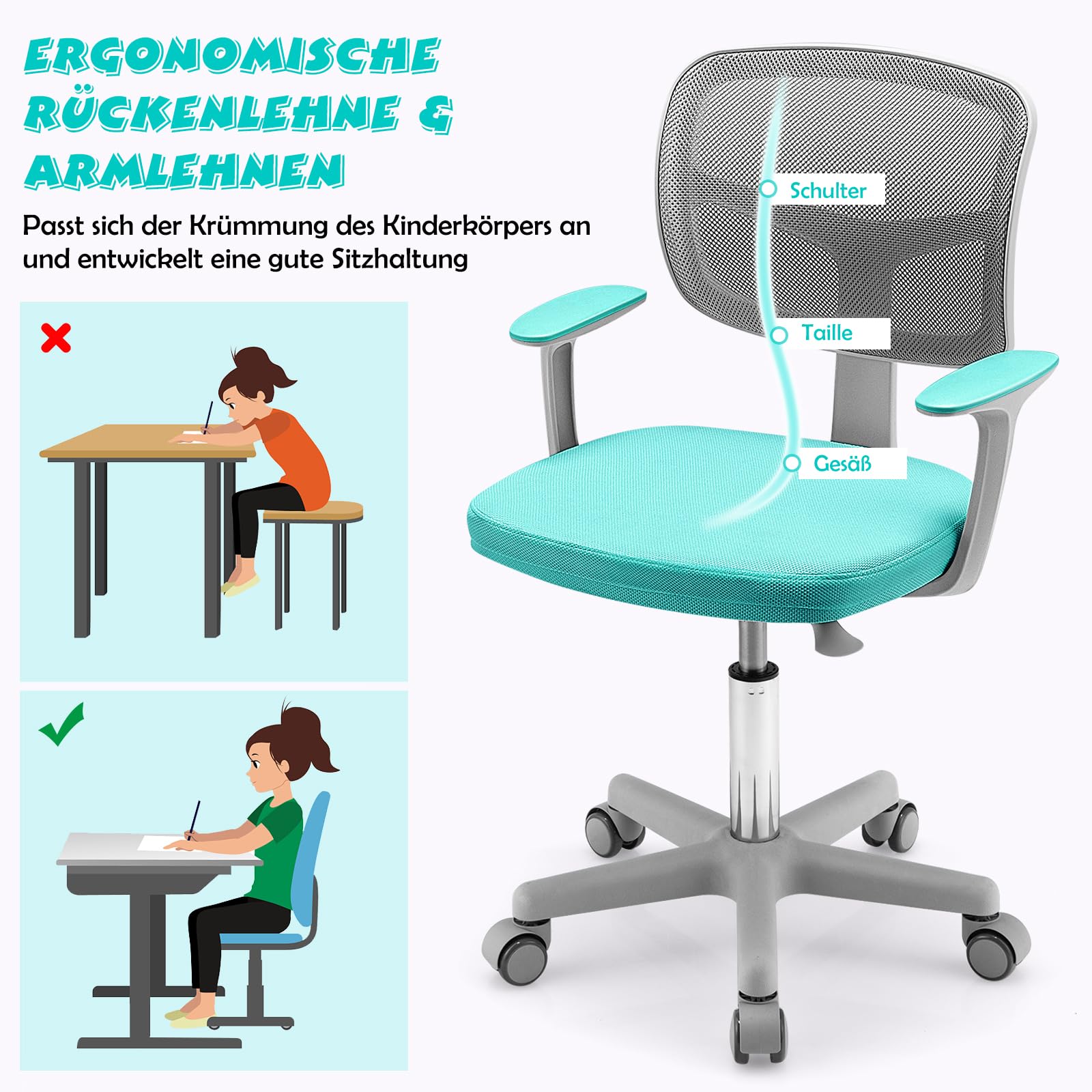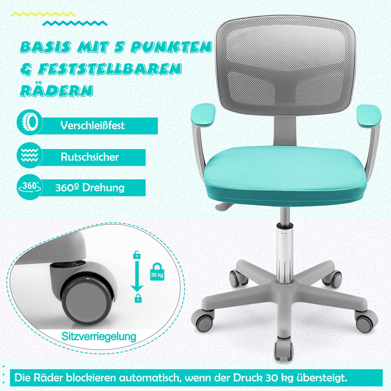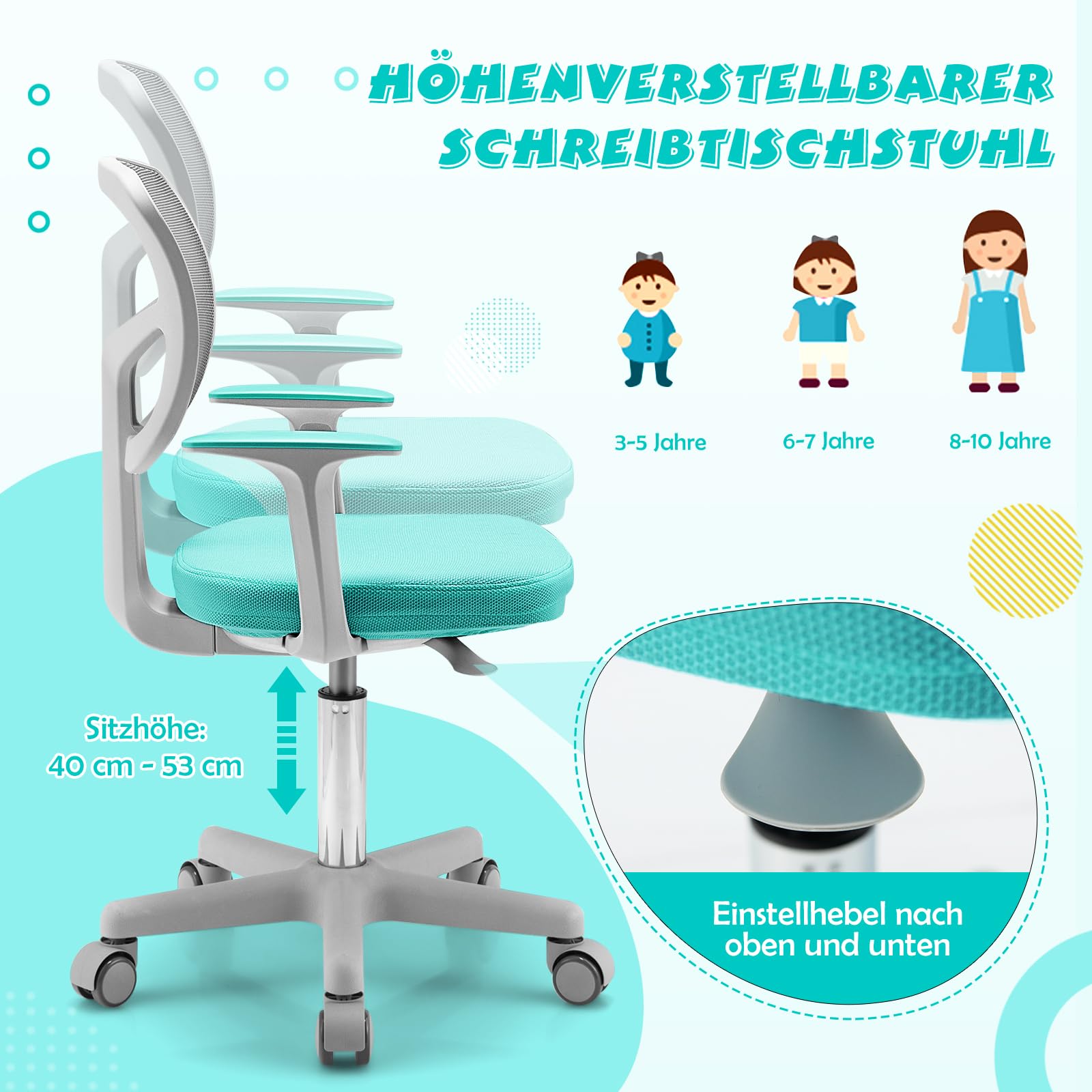 Dieser drehbare und höhenverstellbare Schreibtischstuhl für Kinder bietet optimalen Komfort und unterstützt eine gesunde Körperhaltung beim Lernen, Malen oder Basteln. Er ist der ideale Begleiter für die ersten Schuljahre und passt sich dem Wachstum Ihres Kindes flexibel an.