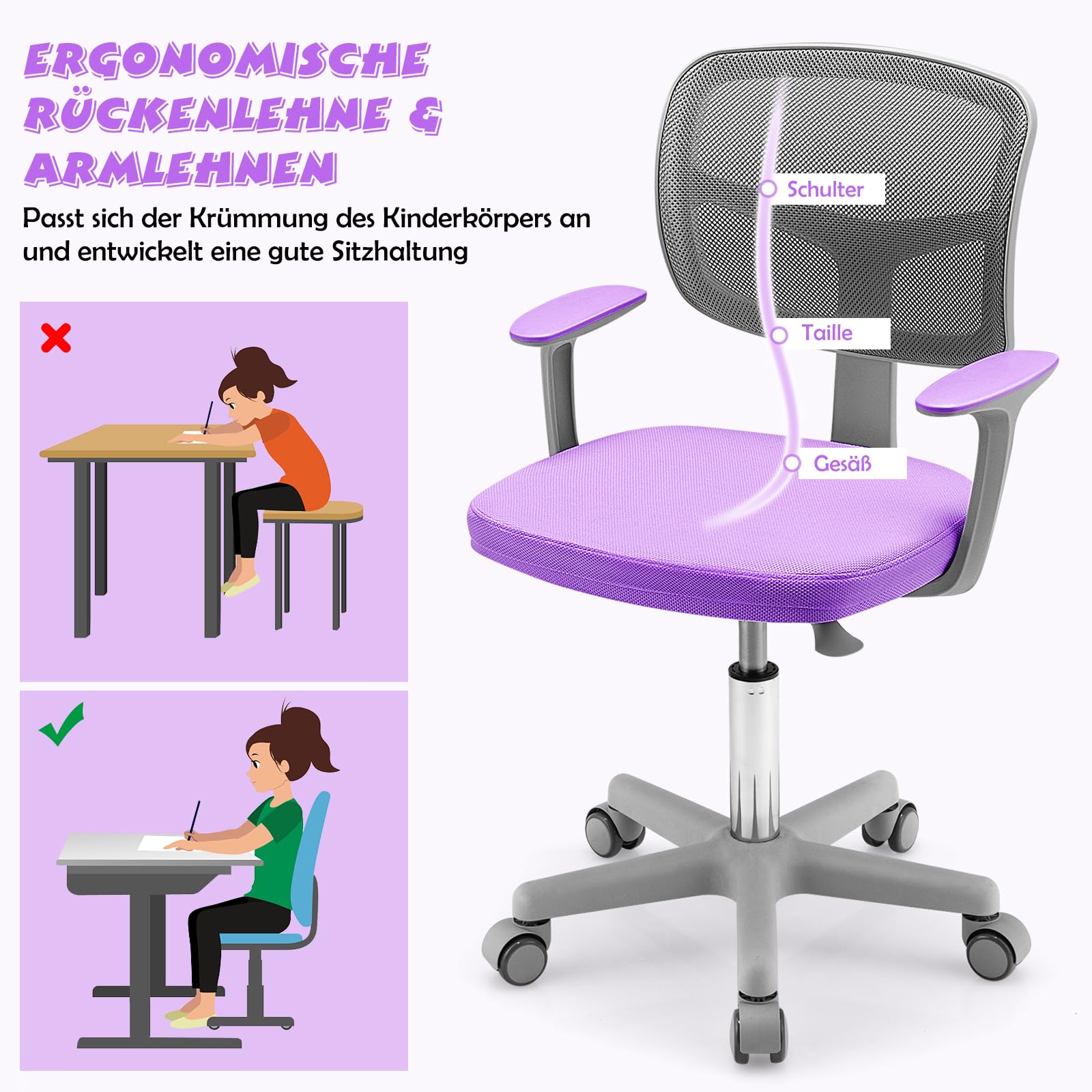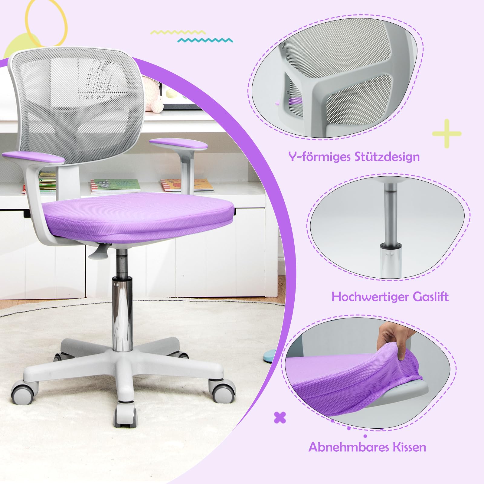 COSTWAY Jugendstuhl Drehbar Höhenverstellbar - Violett