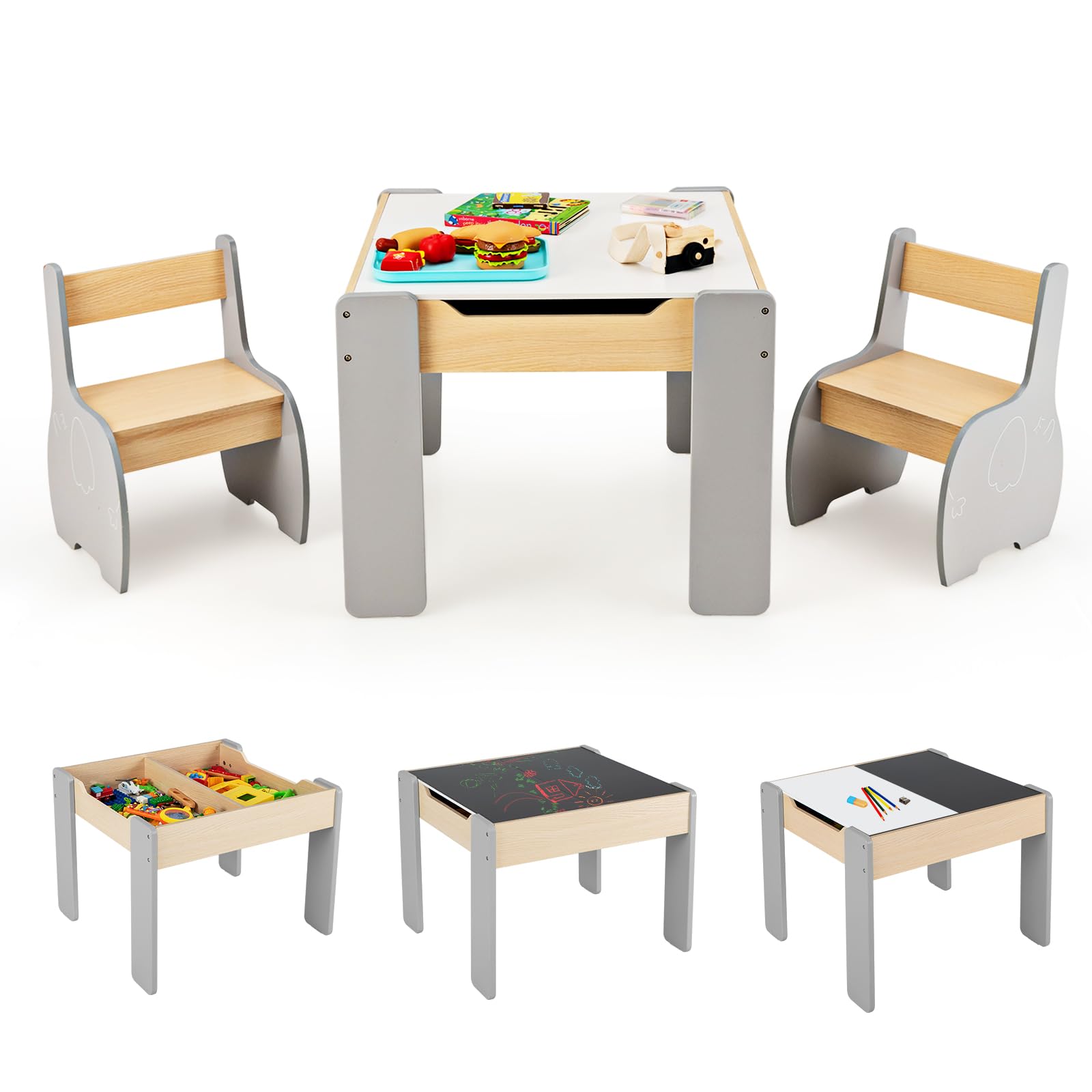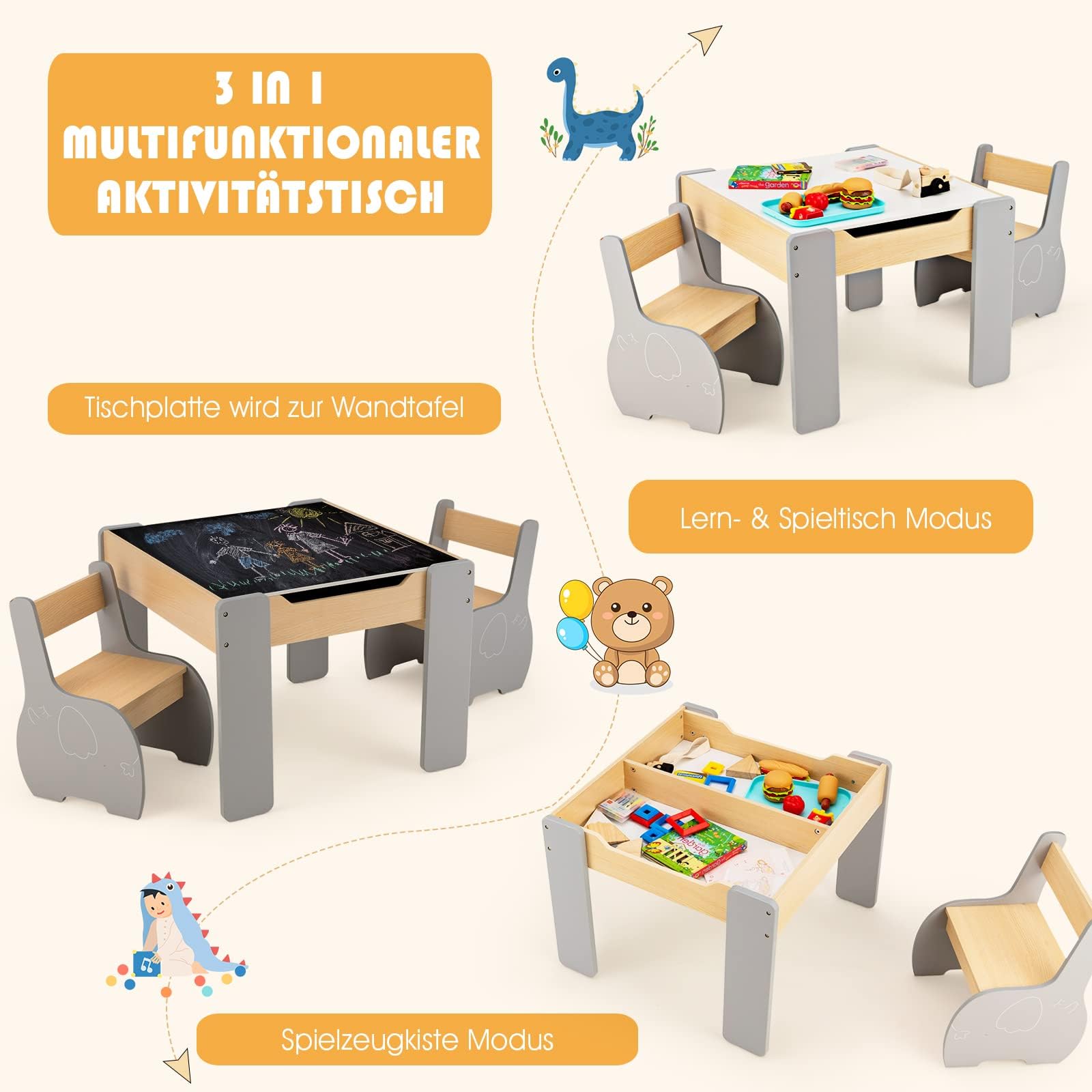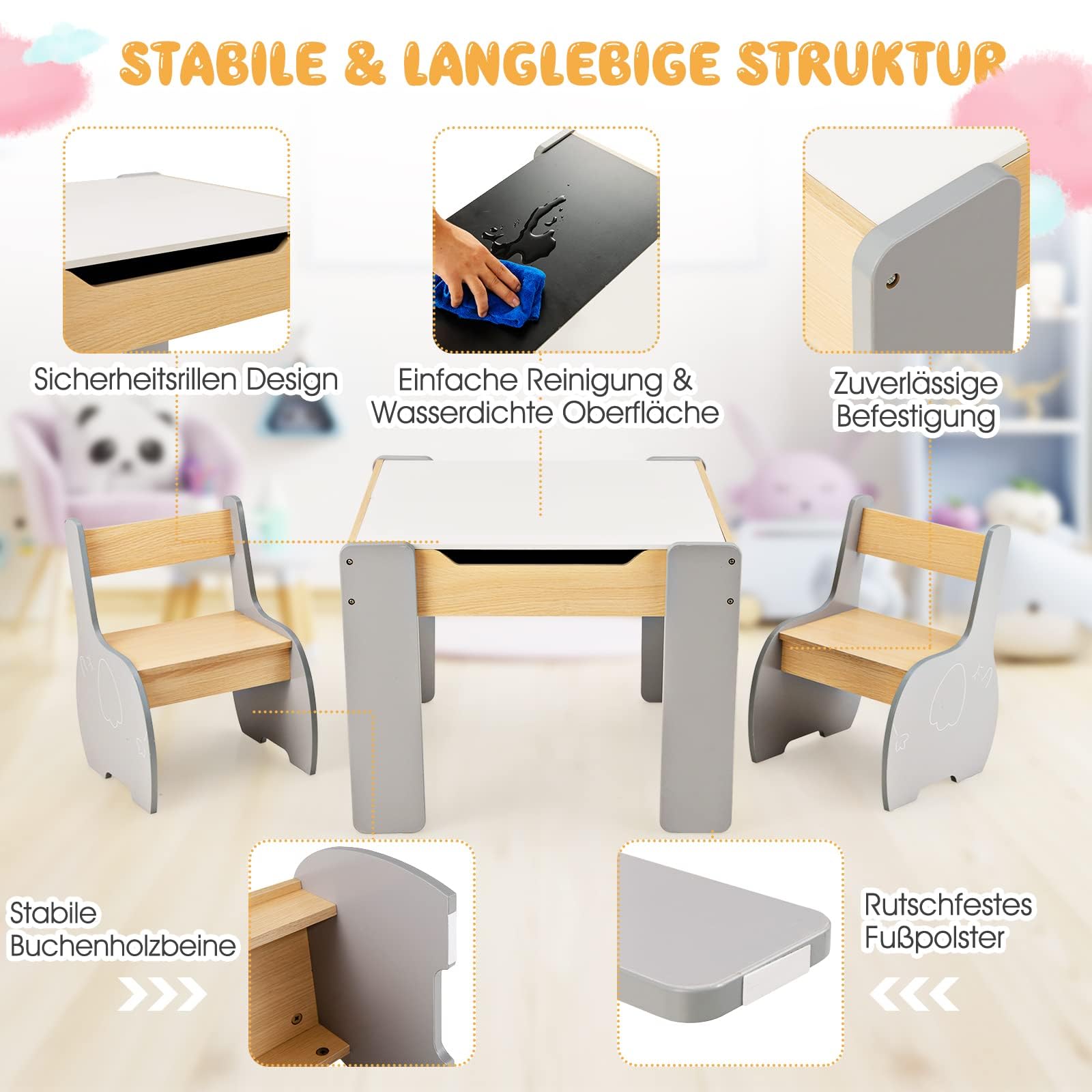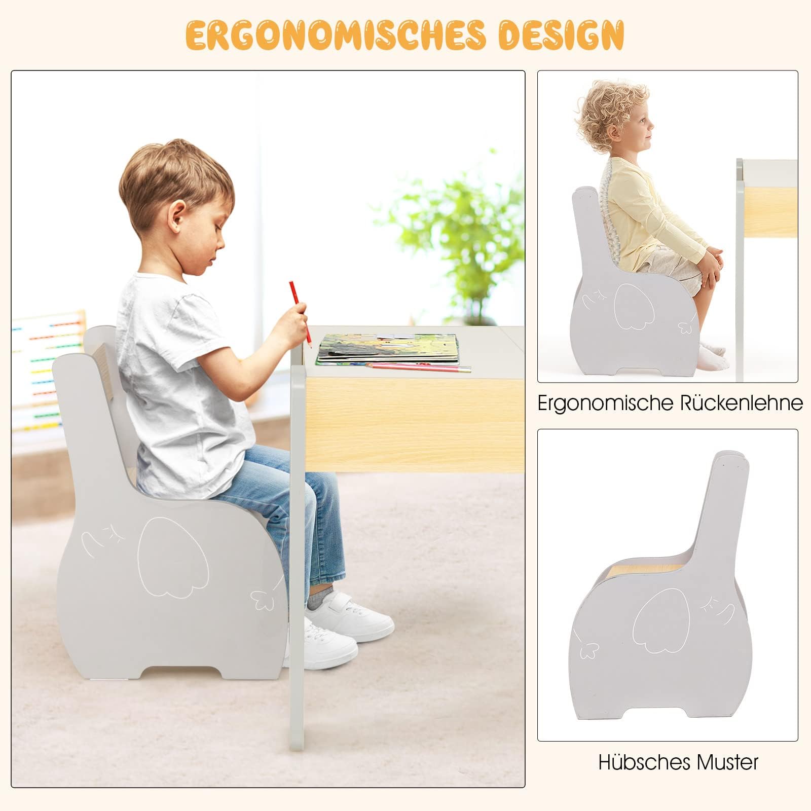 COSTWAY Kindertisch mit 2 Stühlen Kindersitzgruppe - Grau