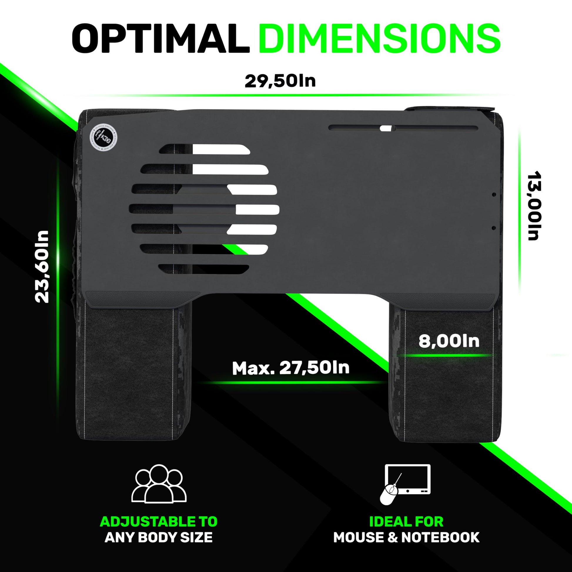 - Grosszügige Fläche: Mit ausreichend Platz für Notebooks bis zu 17 Zoll bietet die Auflage selbst für grosse Gaming-Laptops eine absolut stabile Basis.