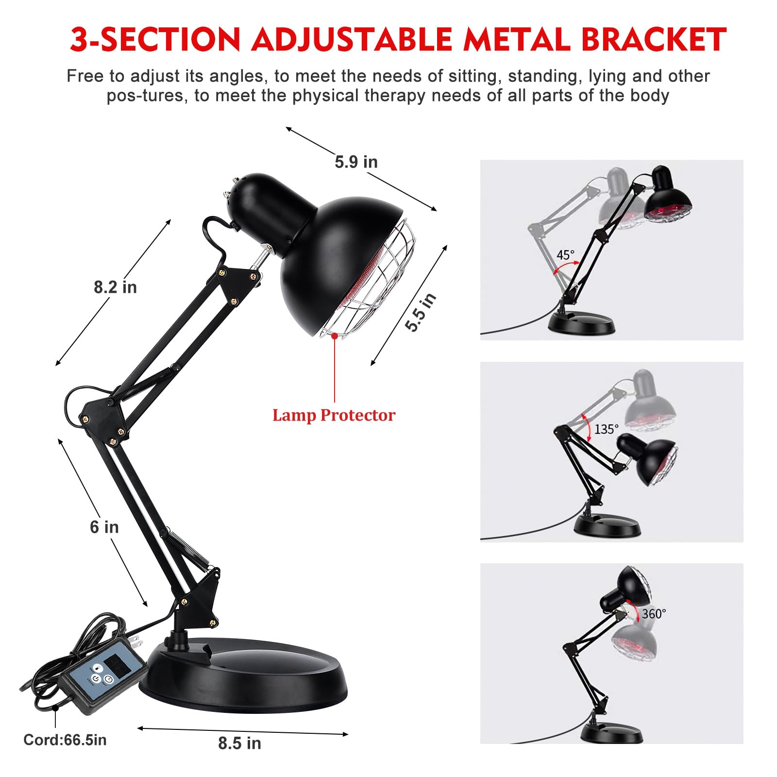 Diese 150W Infrarot-Wärmelampe wurde entwickelt, um mit gezielter Tiefenwärme zur Linderung von Muskelbeschwerden und zur Förderung der allgemeinen Entspannung beizutragen.