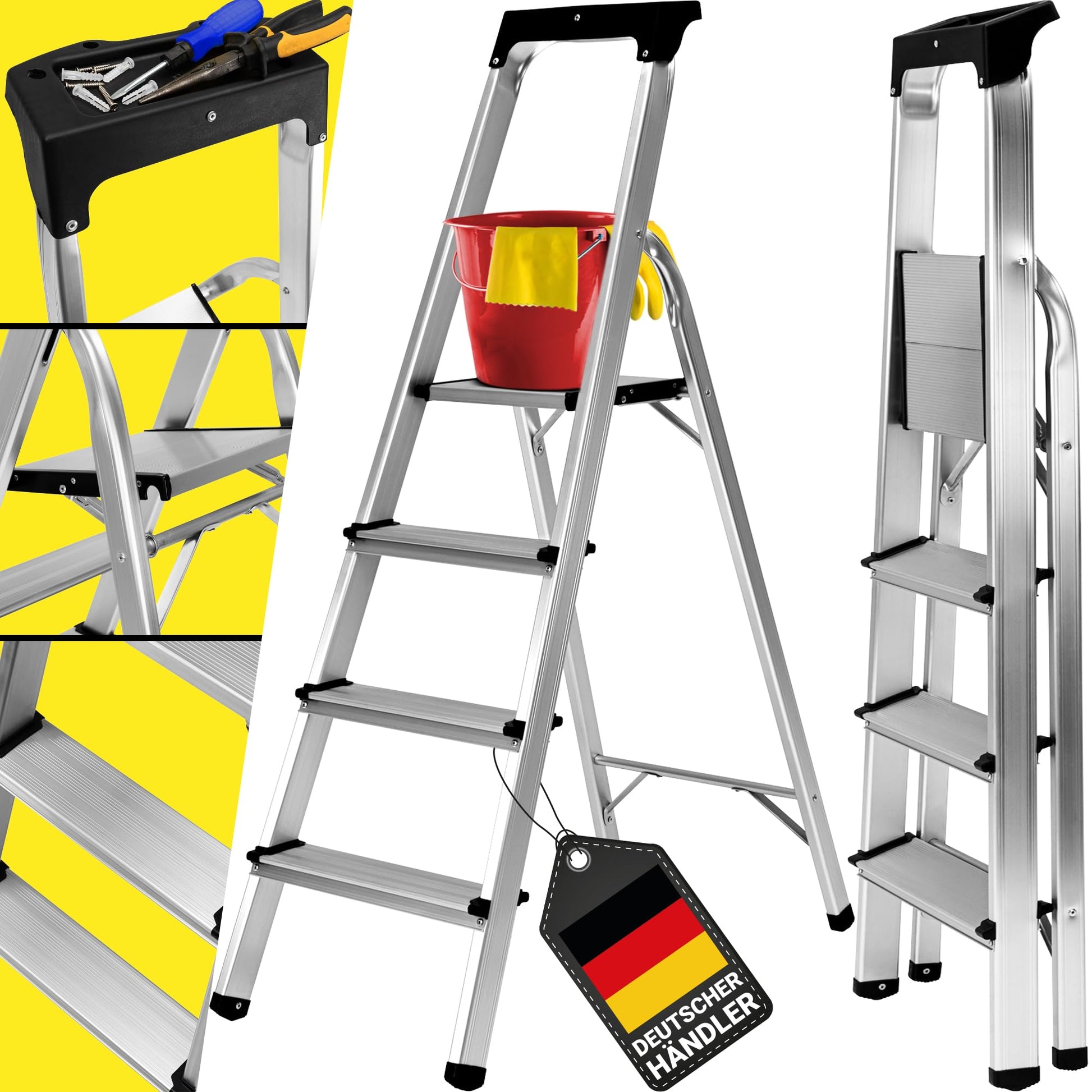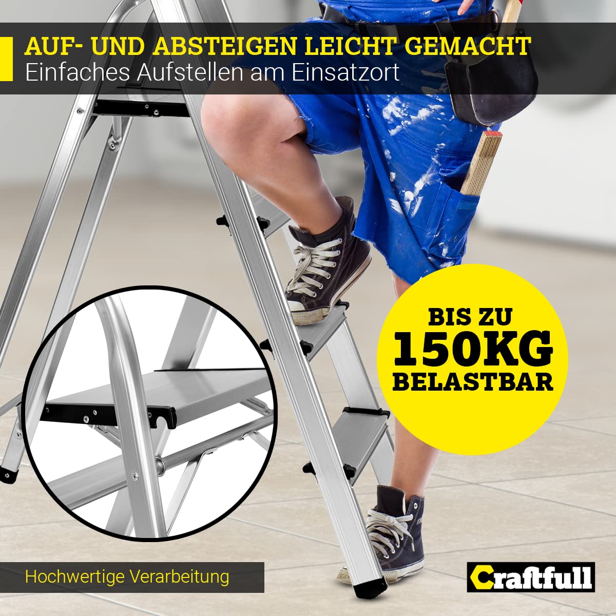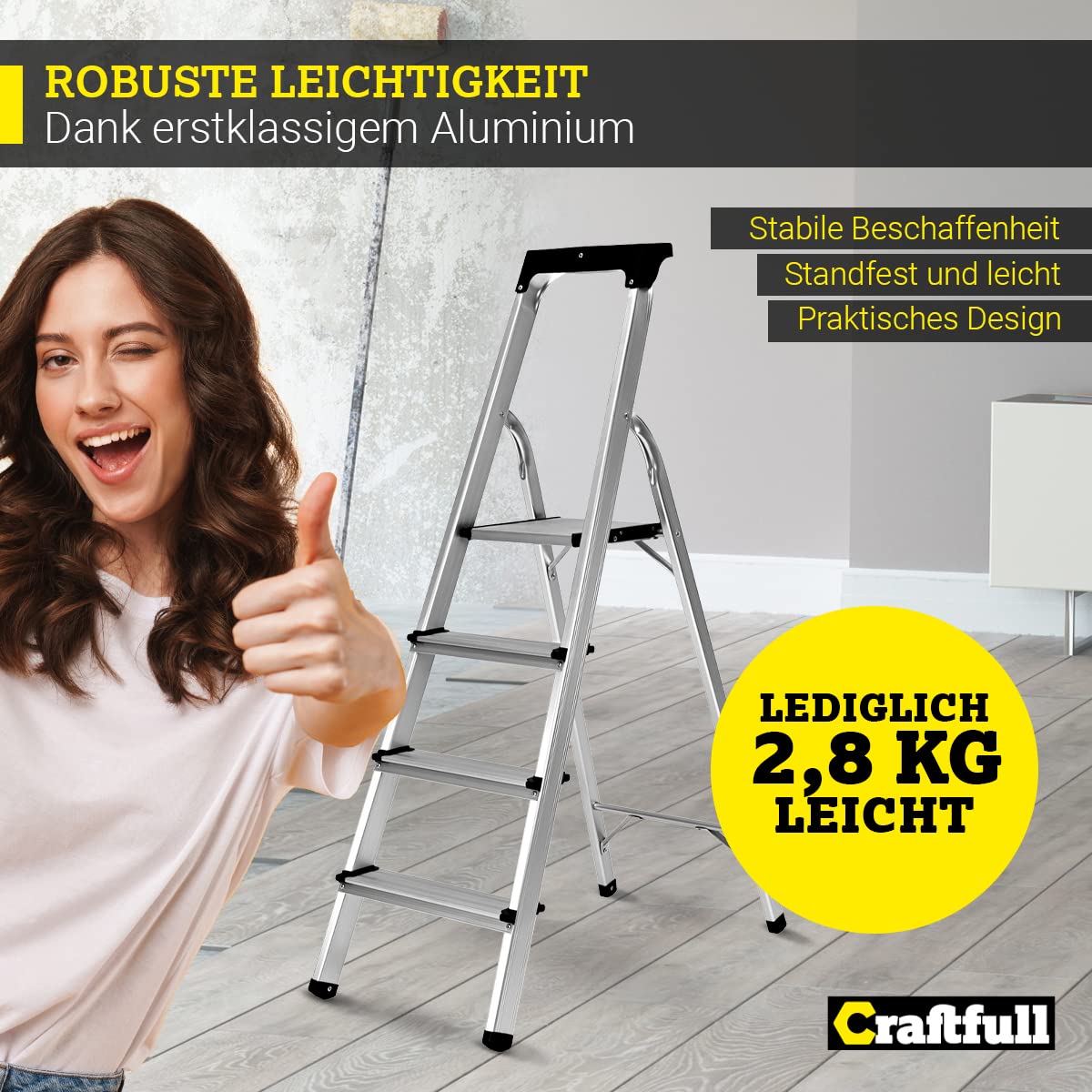 CRAFTFULL CF-133B Alu Klappleiter mit Ablage – 4 Stufen Haushaltsleiter