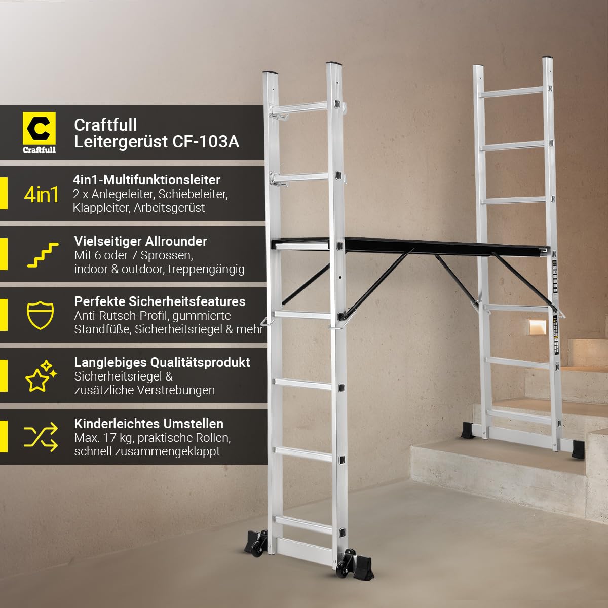 CRAFTFULL CF-103A Alu Rollgerüst und Leiter - 7 Sprossen