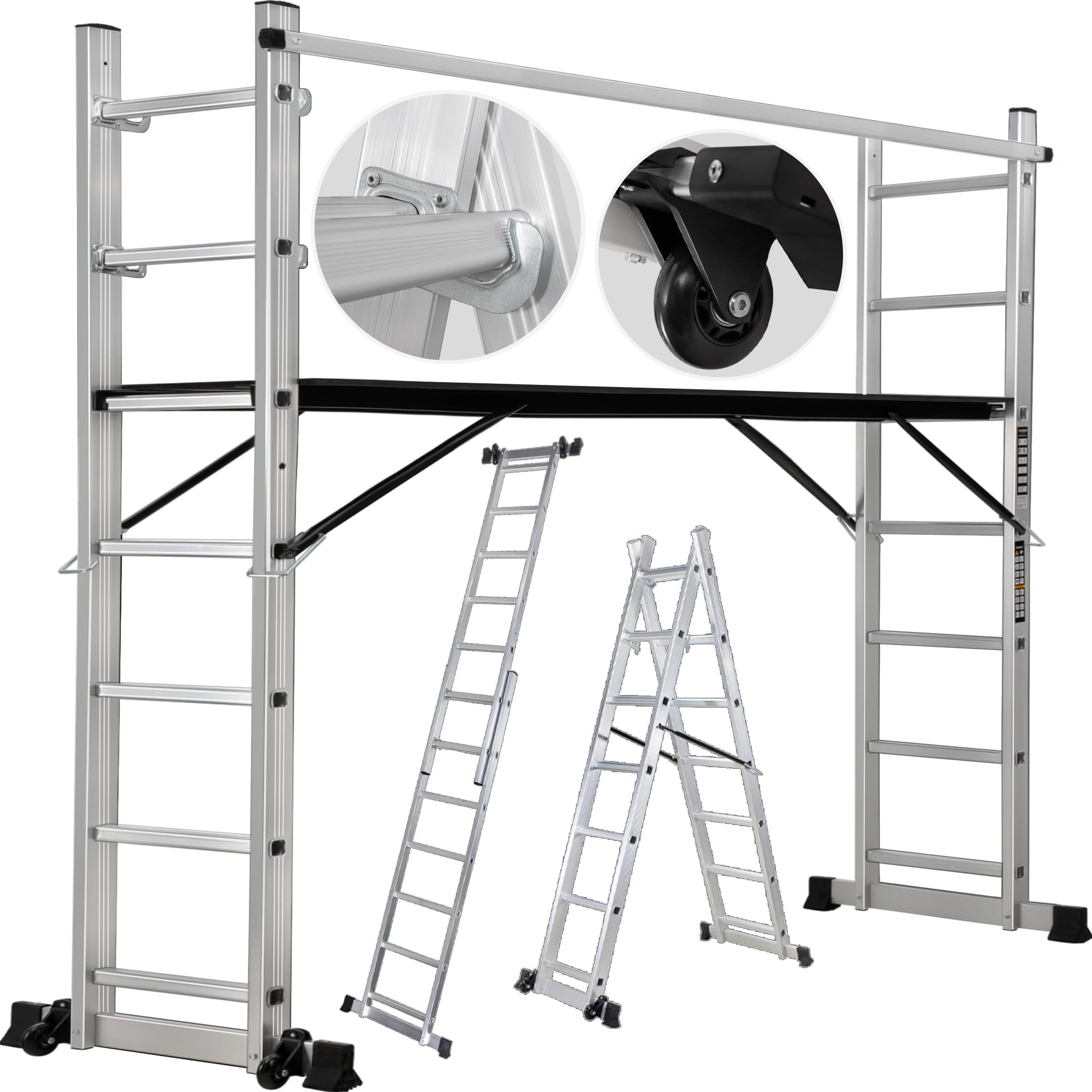 Mit diesem multifunktionalen Leitergerüst sparen Sie sich die Anschaffung mehrerer separater Leitern und haben für jede Aufgabe, von Renovierungen über Gartenarbeiten bis hin zu Handwerksprojekten, das passende Werkzeug zur Hand. Die durchdachten Sicherheitsmerkmale geben Ihnen die notwendige Stabilität, um sich voll auf Ihre Arbeit konzentrieren zu können. Die robuste Konstruktion verspricht eine lange Lebensdauer, während die Mobilität Ihnen wertvolle Zeit und Mühe beim Aufbau und Transport erspart.