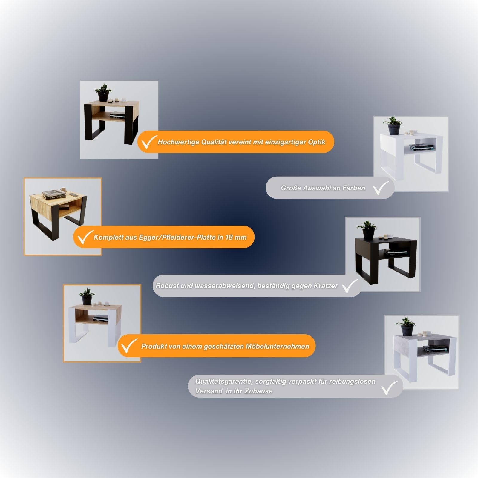 - Praktische Ablage: Eine zusätzliche untere Ablagefläche bietet praktischen Stauraum für Zeitschriften, Fernbedienungen und mehr.