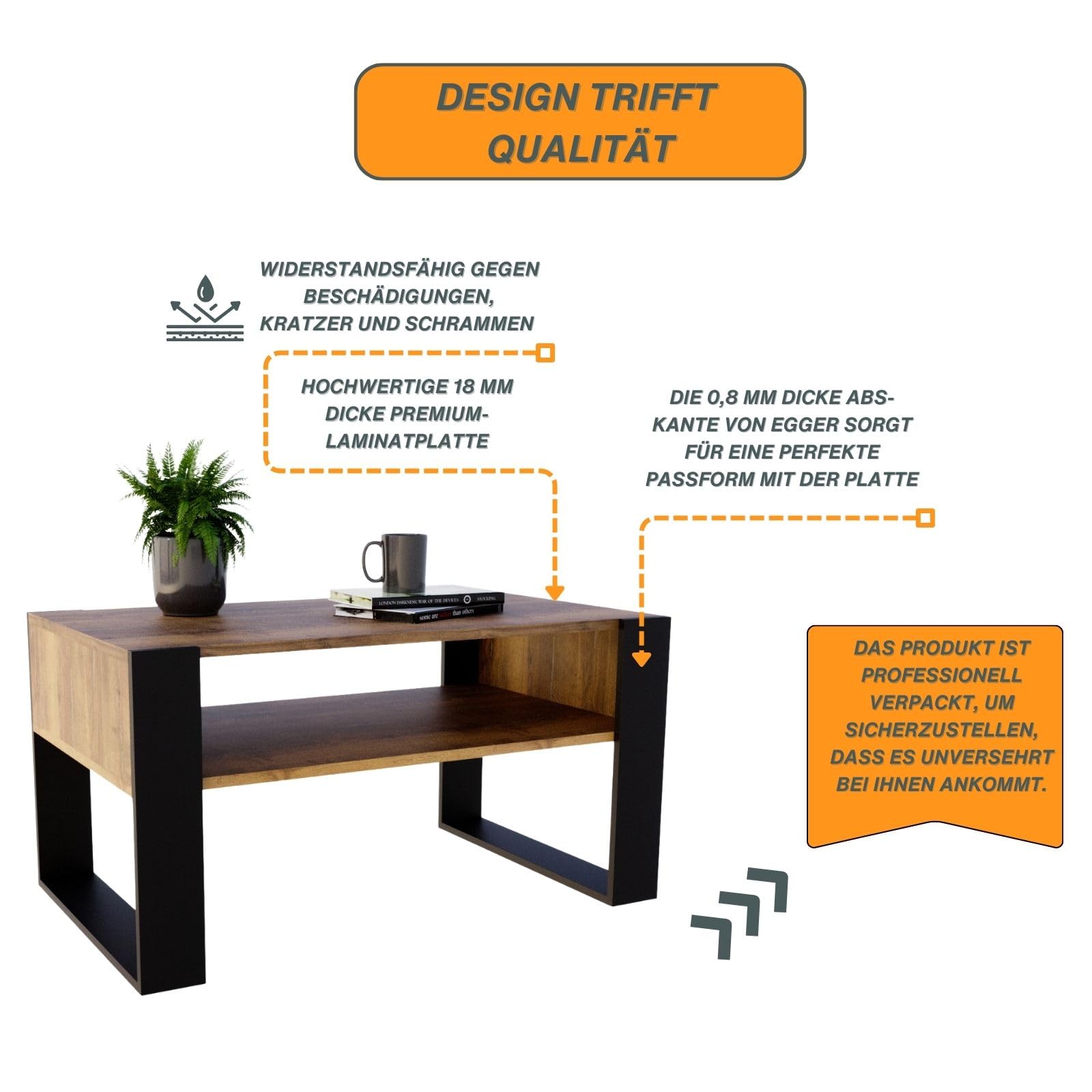 CraftPAK Couchtisch Holzwerkstoff mit Ablage – Retro-Schwarz