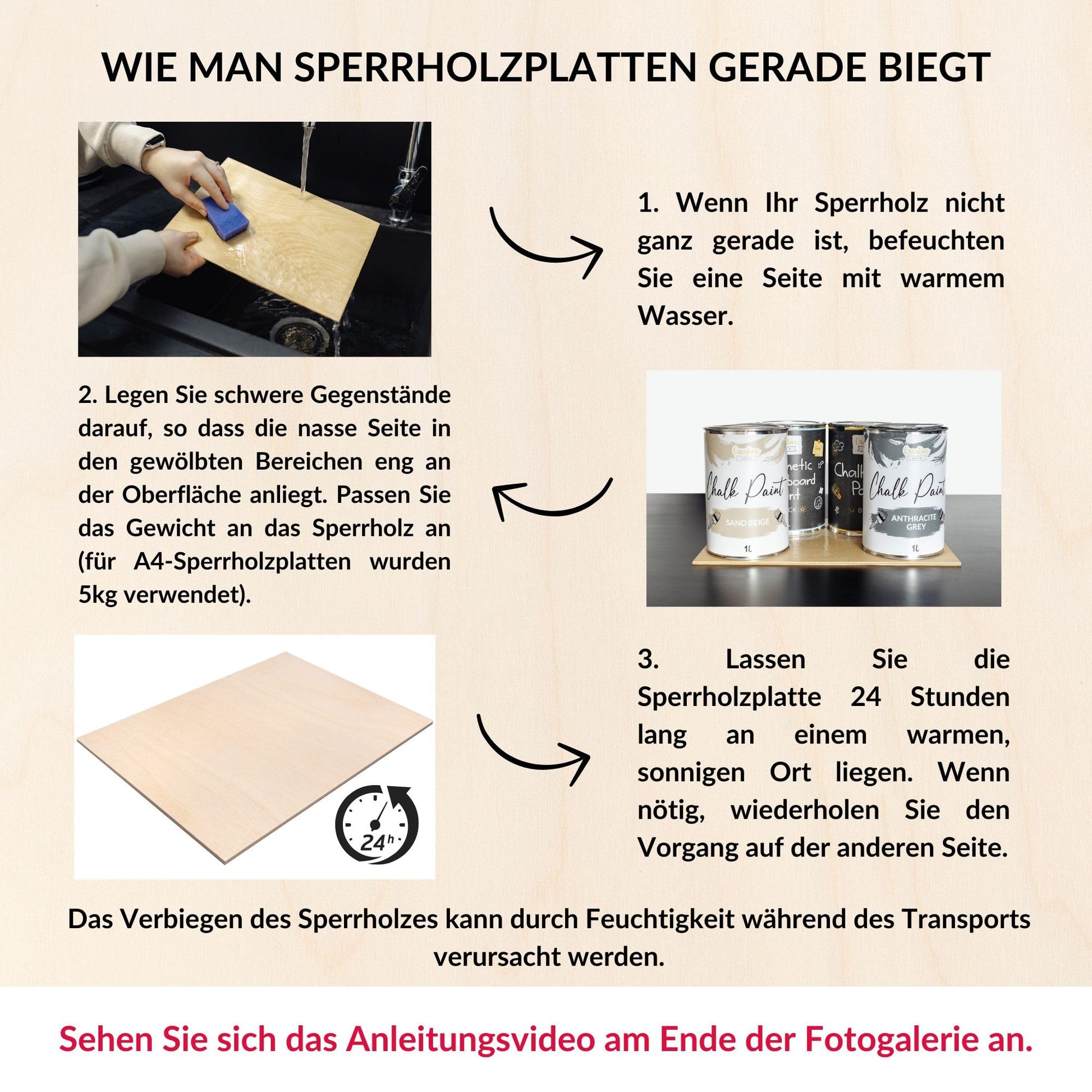 Die glatte Oberfläche der Birkensperrholzplatten eignet sich hervorragend für verschiedenste Veredelungstechniken. Ob Sie die Platten bemalen, lackieren, beizen oder für Brandmalerei (Pyrografie) und Decoupage verwenden möchten – Ihrer Kreativität sind keine Grenzen gesetzt. Sie dienen als perfekte Basis für personalisierte Geschenke, Dekorationen für Feste wie Geburtstage oder Babypartys und unzählige weitere DIY-Projekte.