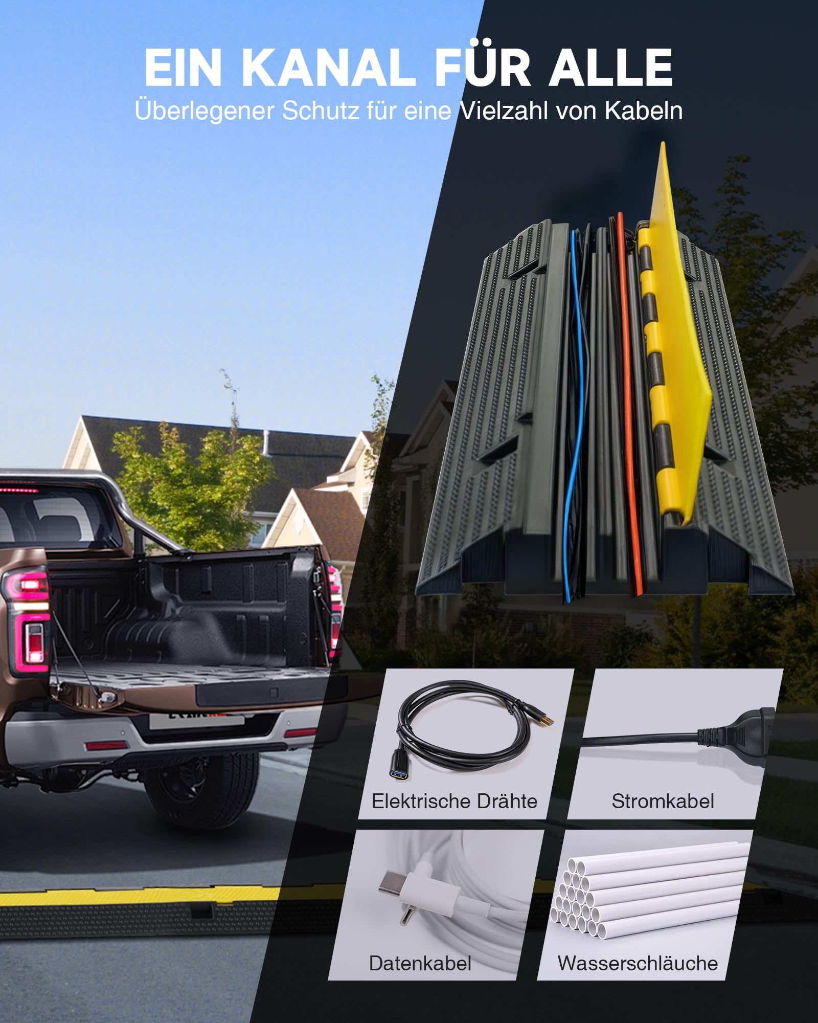 Dieses 3-teilige Set an robusten Kabelbrücken bietet eine professionelle und sichere Lösung, um Kabel, Leitungen und Schläuche vor dem Überfahren durch Fahrzeuge zu schützen und gleichzeitig Stolperfallen zu vermeiden.