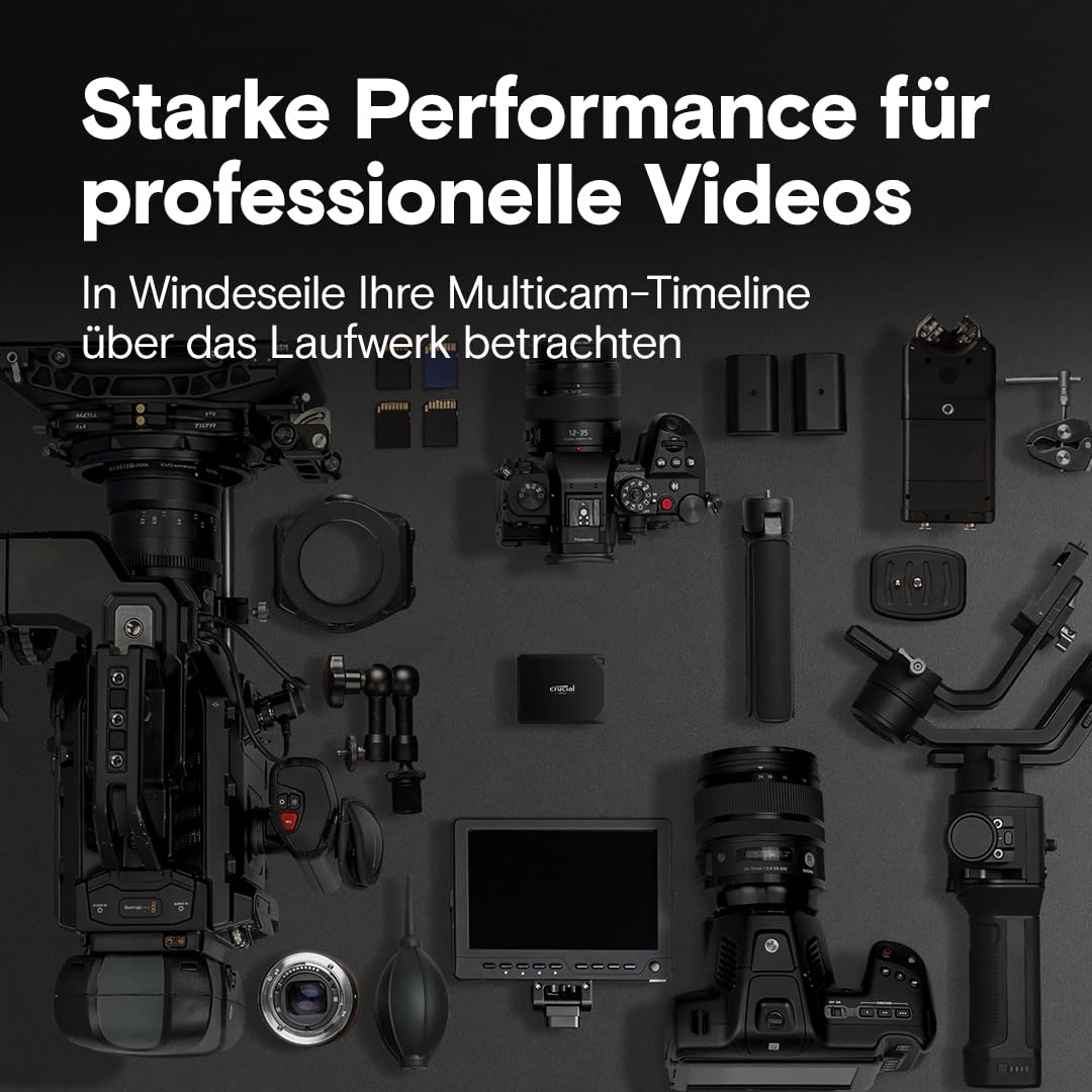 Diese externe SSD im kompakten Hosentaschenformat liefert die Leistung, die Sie für anspruchsvollste Aufgaben wie die professionelle Videobearbeitung benötigen. Arbeiten Sie nahtlos und ohne Verzögerungen direkt vom Laufwerk aus, egal ob im Studio oder unterwegs.