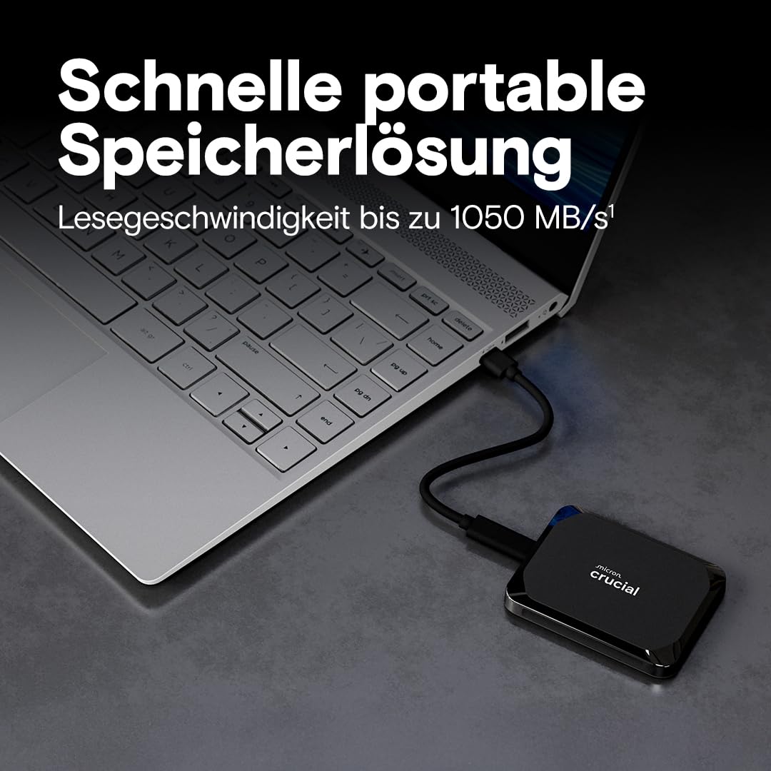 Die Crucial X9 erreicht eine beeindruckende Lesegeschwindigkeit von bis zu 1050 MB/s, was Ladezeiten erheblich verkürzt. Die Schreibgeschwindigkeit ist ebenfalls sehr hoch, sodass Sie grosse Dateien wie Videos oder Spielinstallationen blitzschnell übertragen und sichern können.
