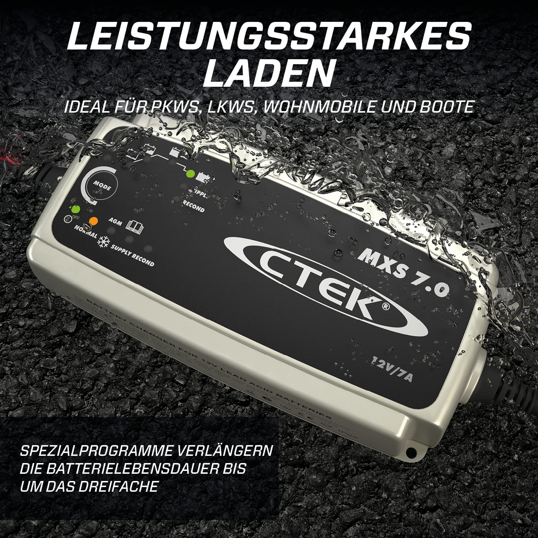 Das CTEK MXS 7.0 ist somit die professionelle Wahl für die Pflege und Ladung von anspruchsvollen 12-V-Batterien, die Leistung und Zuverlässigkeit erfordern.