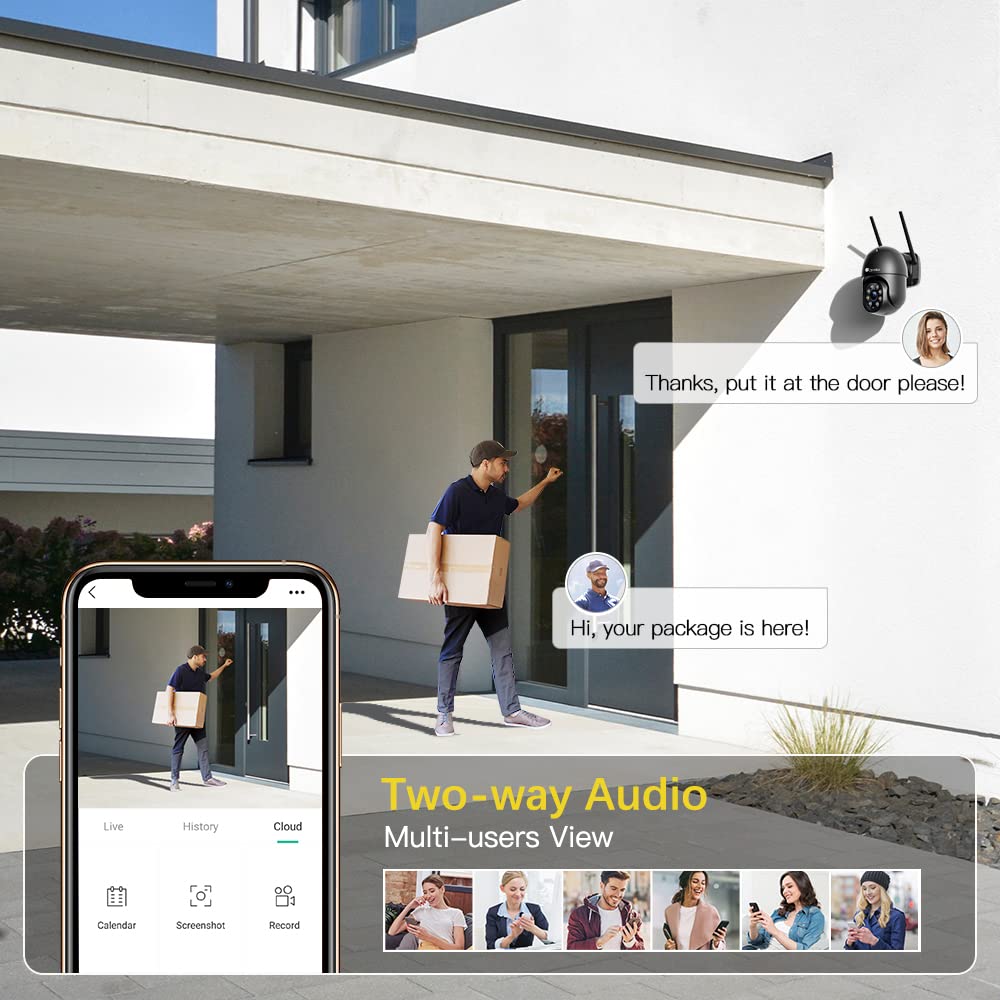 - Zwei-Wege-Audio: Dank integriertem Mikrofon und Lautsprecher können Sie direkt kommunizieren oder unerwünschte Besucher ansprechen.