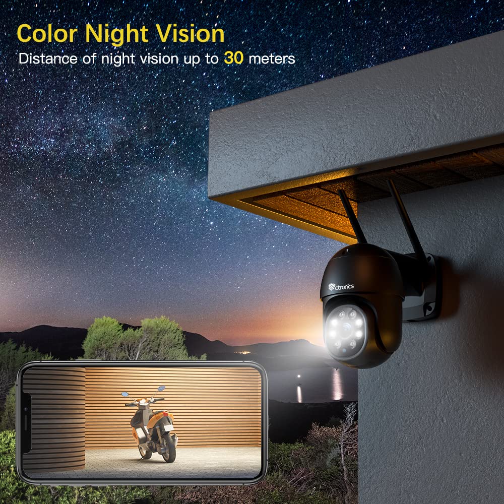 Ctronics 2.5K 4MP Überwachungskamera Aussen WLAN PTZ, 2 St - Schwarz