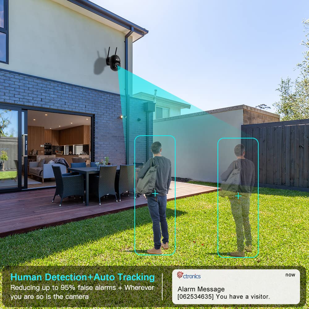 Intelligente Alarme, auf die Sie sich verlassen können: Erhalten Sie nur dann Benachrichtigungen, wenn es wirklich wichtig ist. Die automatische Verfolgungsfunktion sorgt dafür, dass Eindringlinge im Fokus bleiben, was eine lückenlose Beweissicherung ermöglicht und die Sicherheit Ihrer Familie und Ihres Eigentums erhöht.