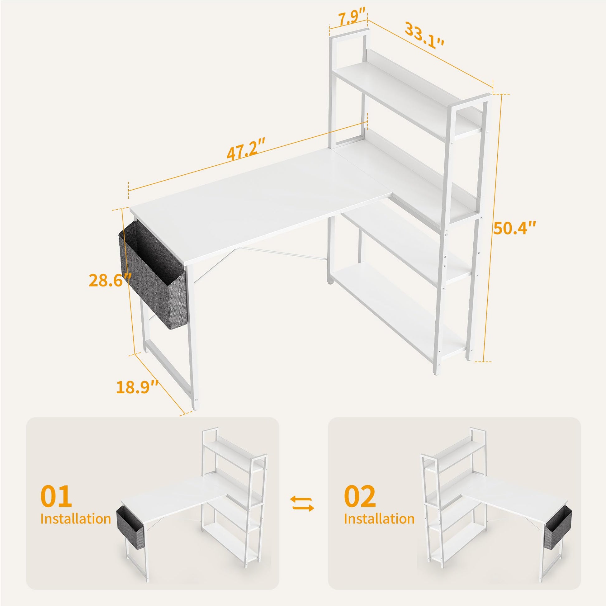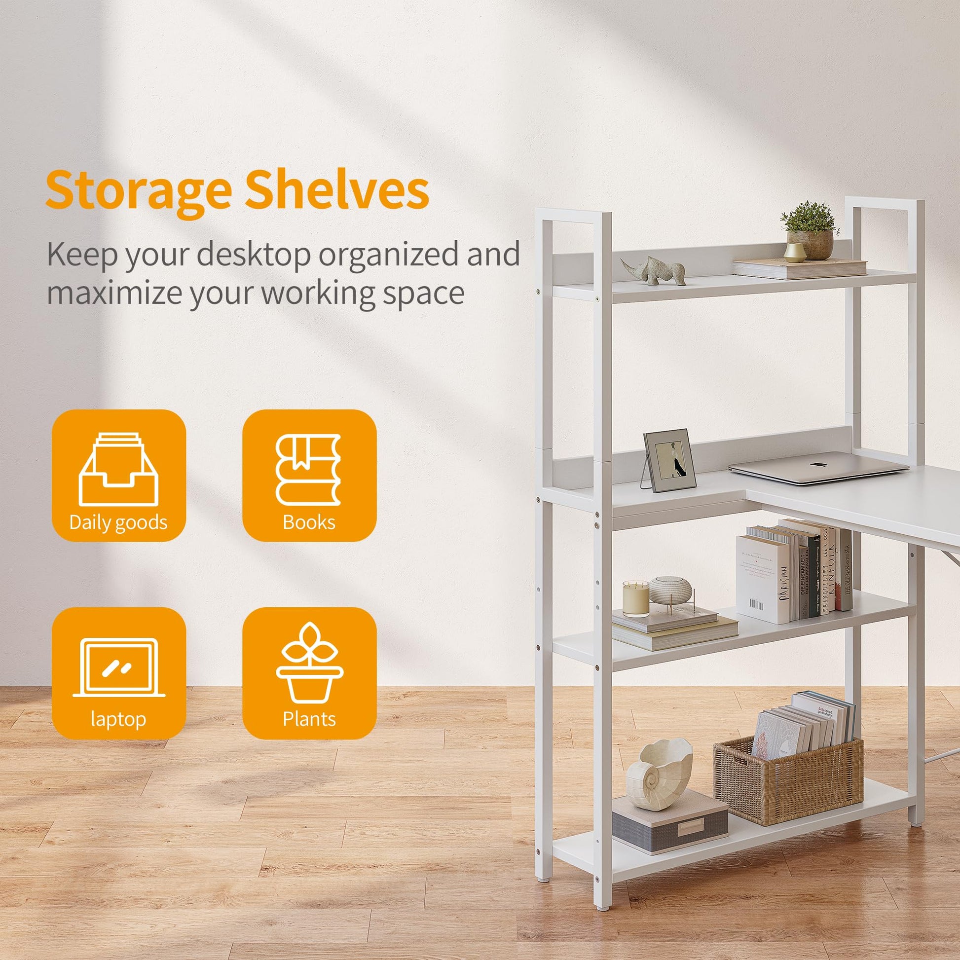 CubiCubi Eckschreibtisch Homeoffice mit Regal 120cm – Weiss