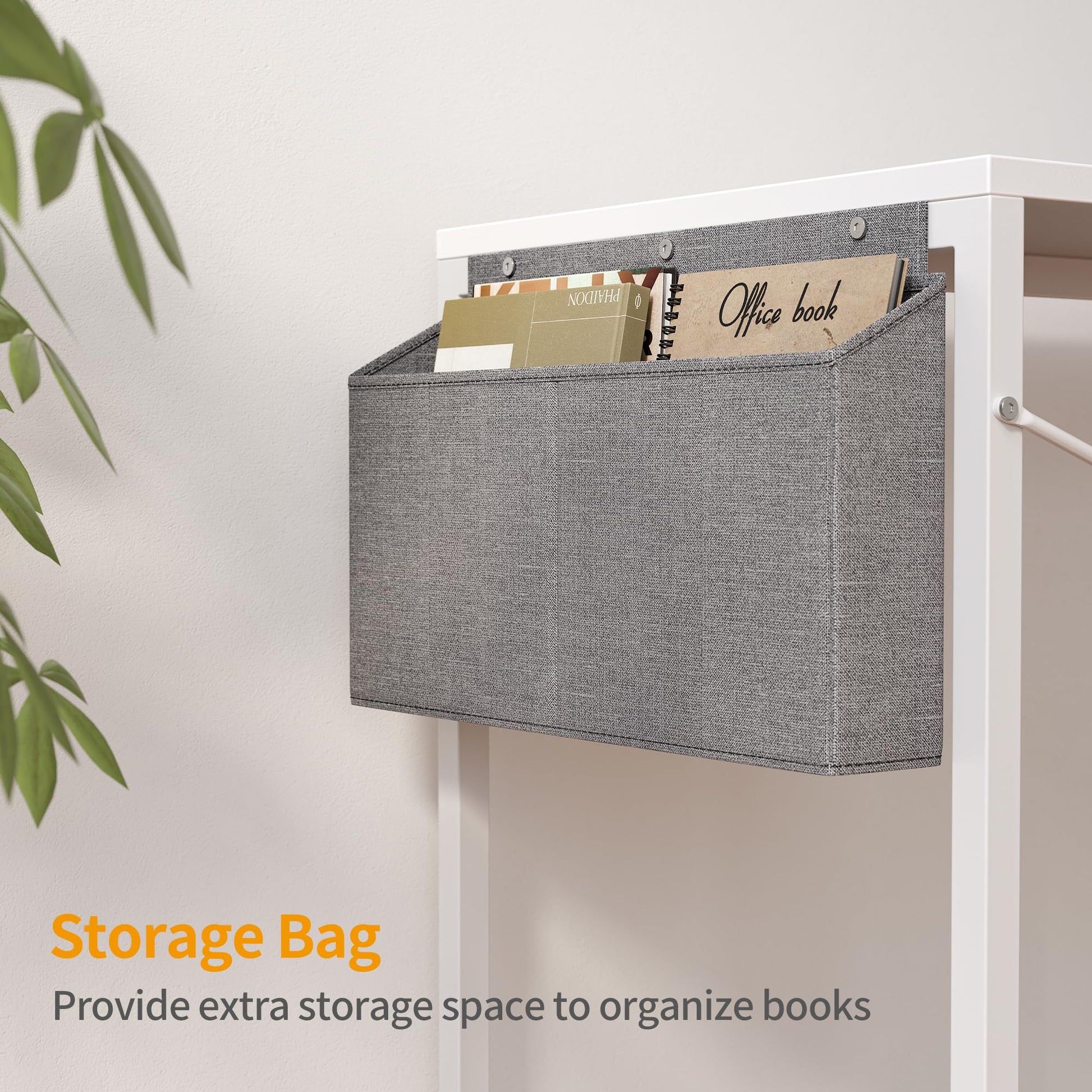 - Integrierter Stauraum: Ausgestattet mit einem praktischen Regal und einer seitlichen Aufbewahrungstasche für Büromaterial.