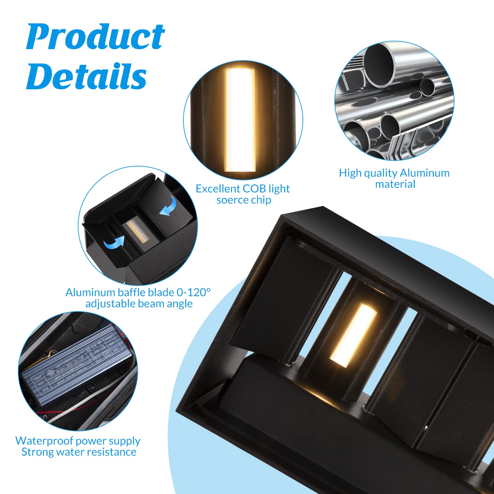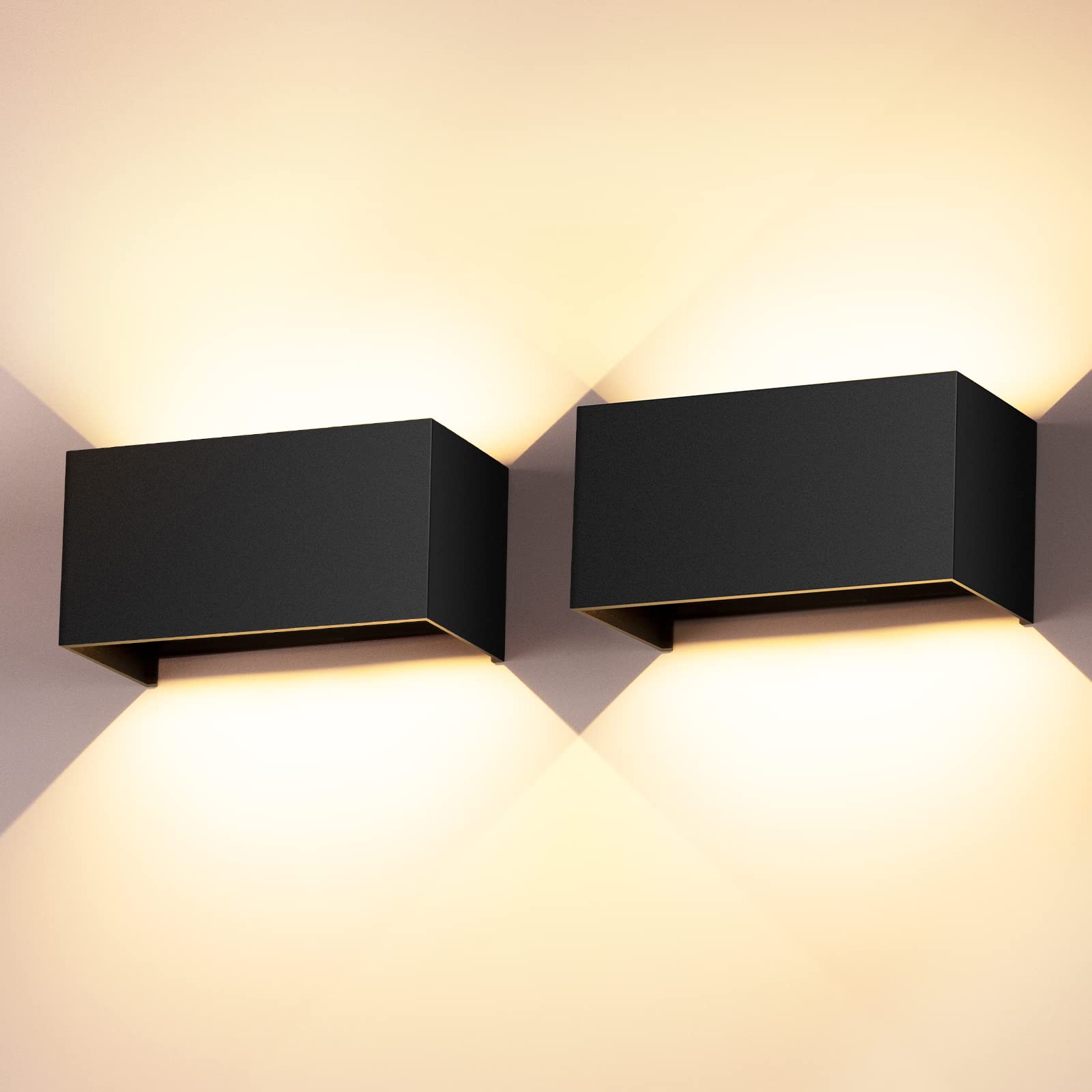Cwycfw 24W LED Wandleuchte Aussen/Innen – Schwarz Warmweiss 2er Set