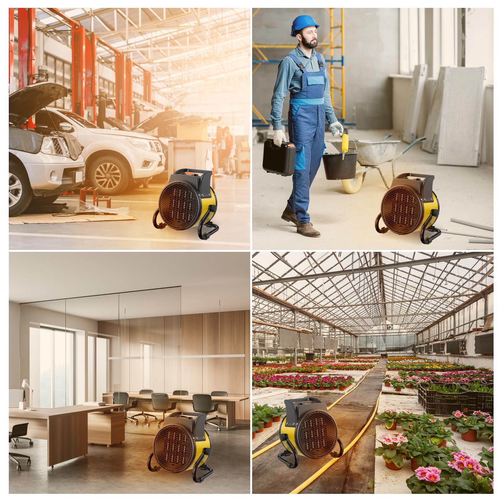 Absolut. Mit seinem geringen Gewicht von nur 1,5 kg und dem robusten Stahlgehäuse ist er extrem portabel. Er eignet sich ideal für den flexiblen Einsatz in Werkstätten, Garagen, Büros, auf Baustellen oder als mobile Wärmequelle im Haus. Der um bis zu 30° verstellbare Standfuss ermöglicht eine gezielte Wärmeverteilung.