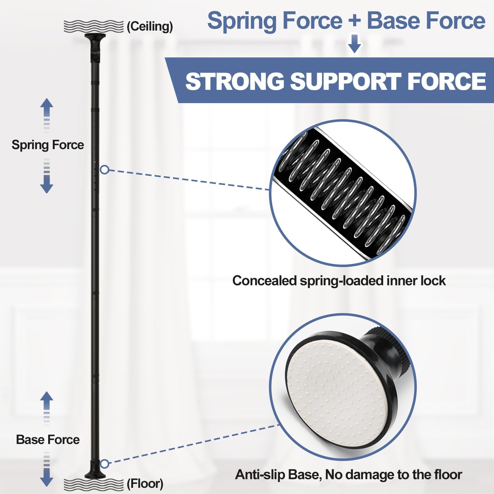 Dank des soliden Spannsystems bietet das Gestell einen festen und zuverlässigen Halt für den alltäglichen Gebrauch als Sichtschutz oder Raumtrenner mit handelsüblichen Vorhängen. Es ist für eine stabile, schadenfreie Befestigung konzipiert.