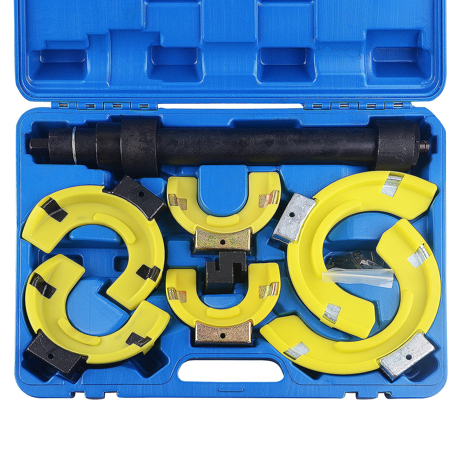 Dieses Set ist ein universeller Federspanner, der speziell für die Mehrheit der McPherson-Federbeinsysteme bei Personenwagen entwickelt wurde. Er ist flexibel einsetzbar und eignet sich sowohl für zylindrische als auch für konische Fahrwerksfedern.