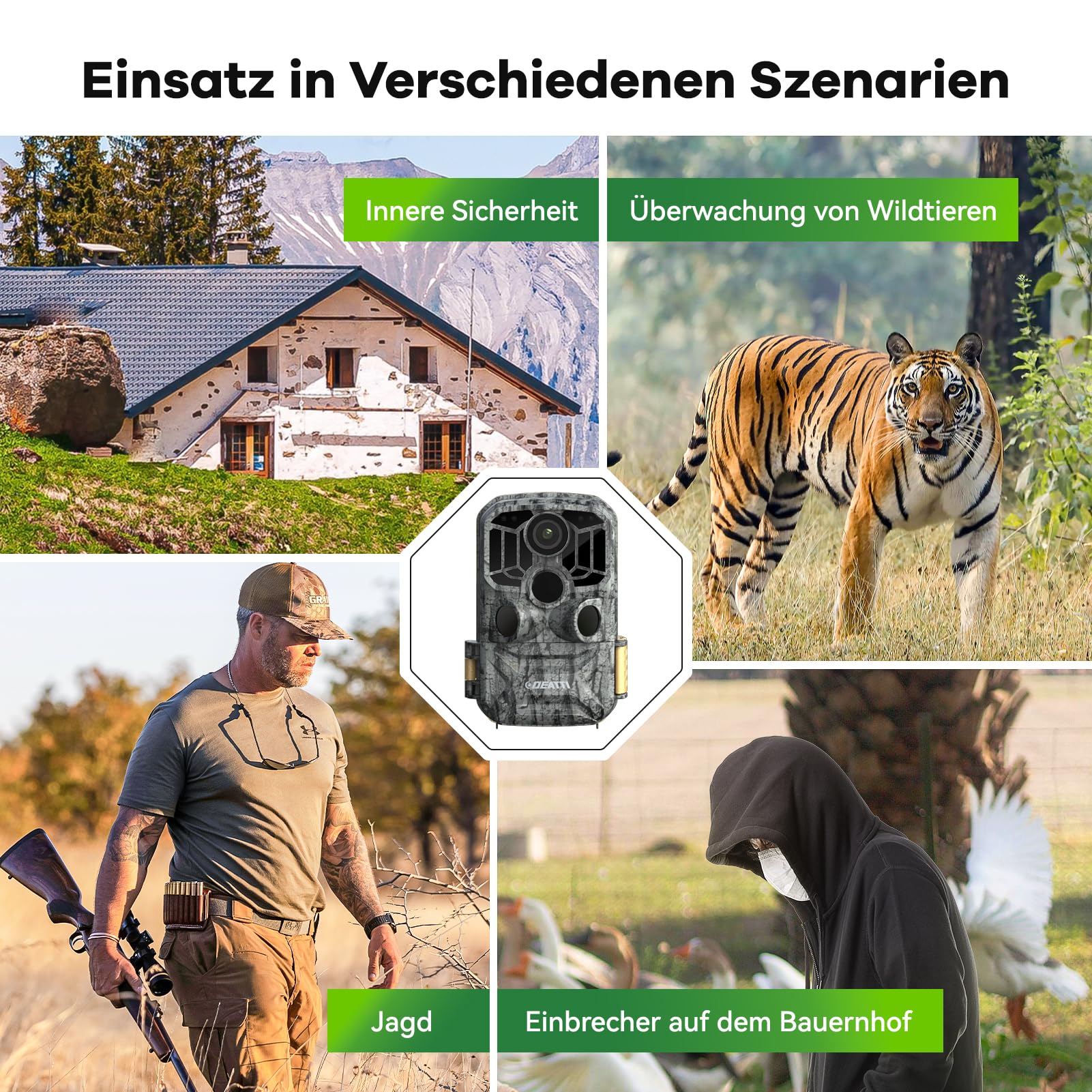 Entdecken Sie die verborgene Welt der Wildtiere in beeindruckender Detailtiefe. Diese Wildkamera ist Ihr zuverlässiges Auge in der Natur und liefert Ihnen hochauflösende Aufnahmen direkt auf Ihr Smartphone – und das sofort nach dem Auspacken.