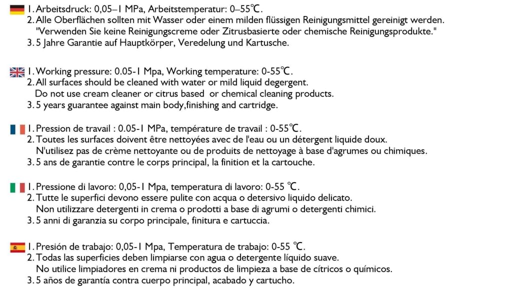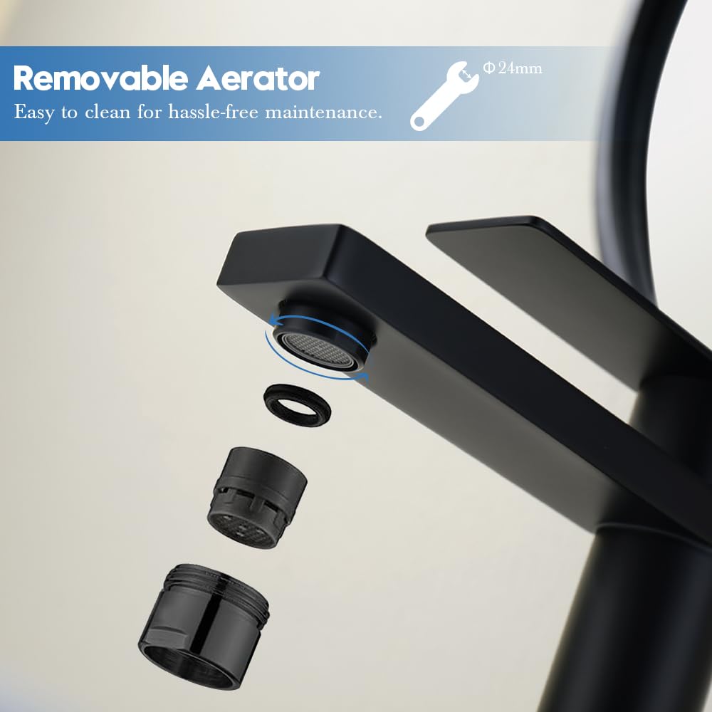 - Strahlregler: Abnehmbarer Luftsprudler für einen weichen, spritzfreien Wasserstrahl und eine einfache Reinigung.