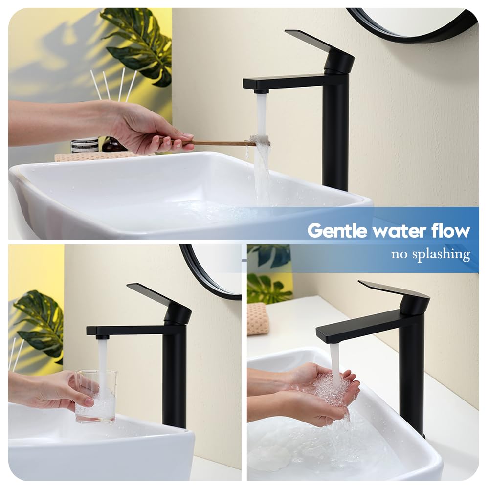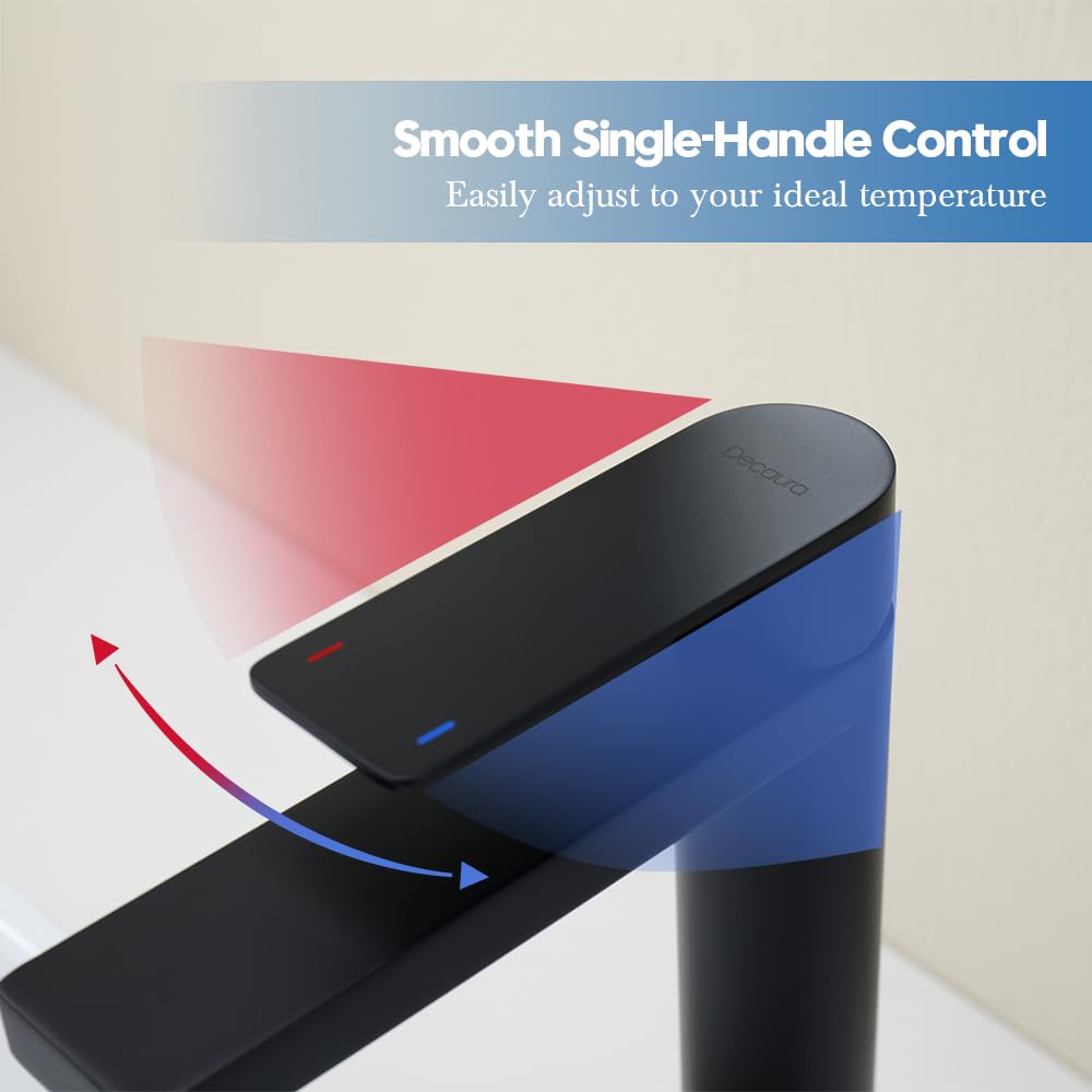 Verleihen Sie Ihrem Badezimmer mit dieser hohen Waschtischarmatur von Decaura einen Hauch von moderner Eleganz. Ihr matt-schwarzes Design und die durchdachte Konstruktion machen sie zur idealen Wahl für Aufsatzwaschbecken und Waschschalen.