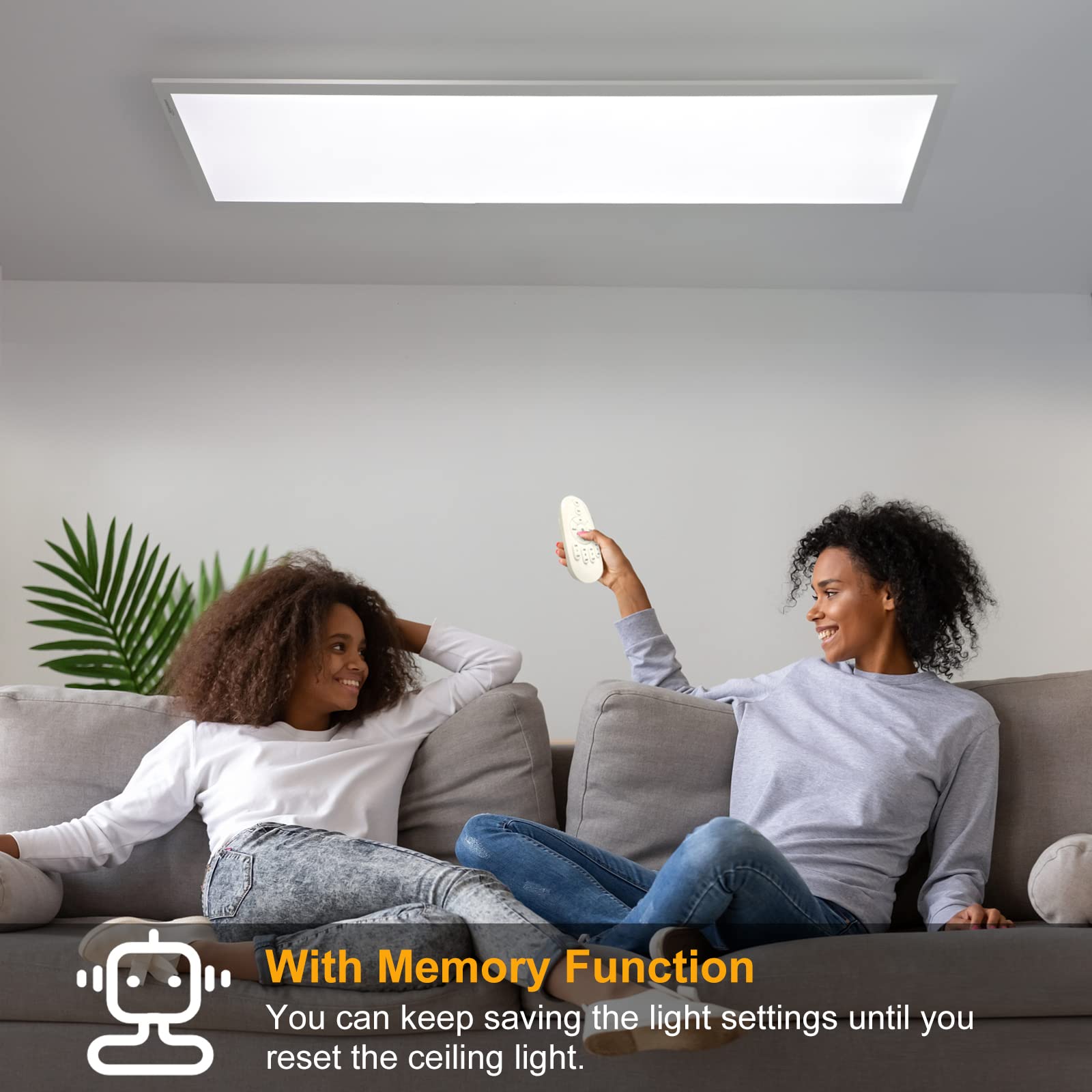 Gestalten Sie die Atmosphäre nach Ihren Wünschen. Mit der mitgelieferten Fernbedienung können Sie die Helligkeit stufenlos regulieren und die Lichtfarbe zwischen behaglichem Warmweiss und konzentrationsförderndem Kaltweiss anpassen. Dank der praktischen Speicherfunktion merkt sich die Leuchte Ihre letzte Einstellung und stellt diese beim nächsten Einschalten automatisch wieder her.