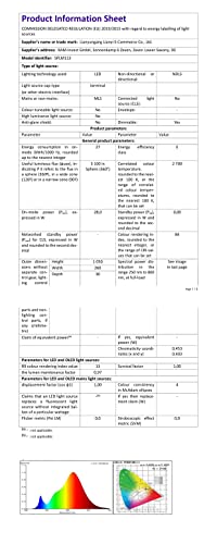Die Leuchte ist mit 28W bei einer Leuchtkraft von 2400 Lumen sehr energieeffizient und spart bis zu 90% Strom im Vergleich zu herkömmlichen Glühbirnen. Die fest verbauten LEDs sind auf eine aussergewöhnlich lange Lebensdauer von über 50.000 Stunden ausgelegt.