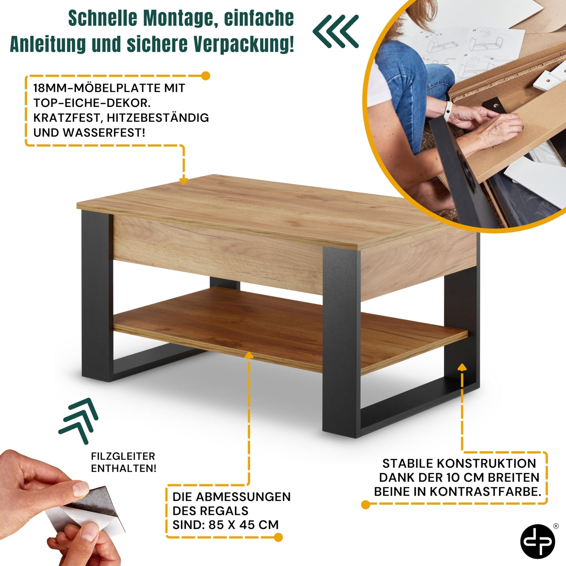 - Einfache Montage & Bodenschutz: Der Aufbau gelingt dank der klaren Anleitung und dem kompletten Montageset mühelos. Mitgelieferte Filzgleiter schützen Ihren Boden vor Kratzern.