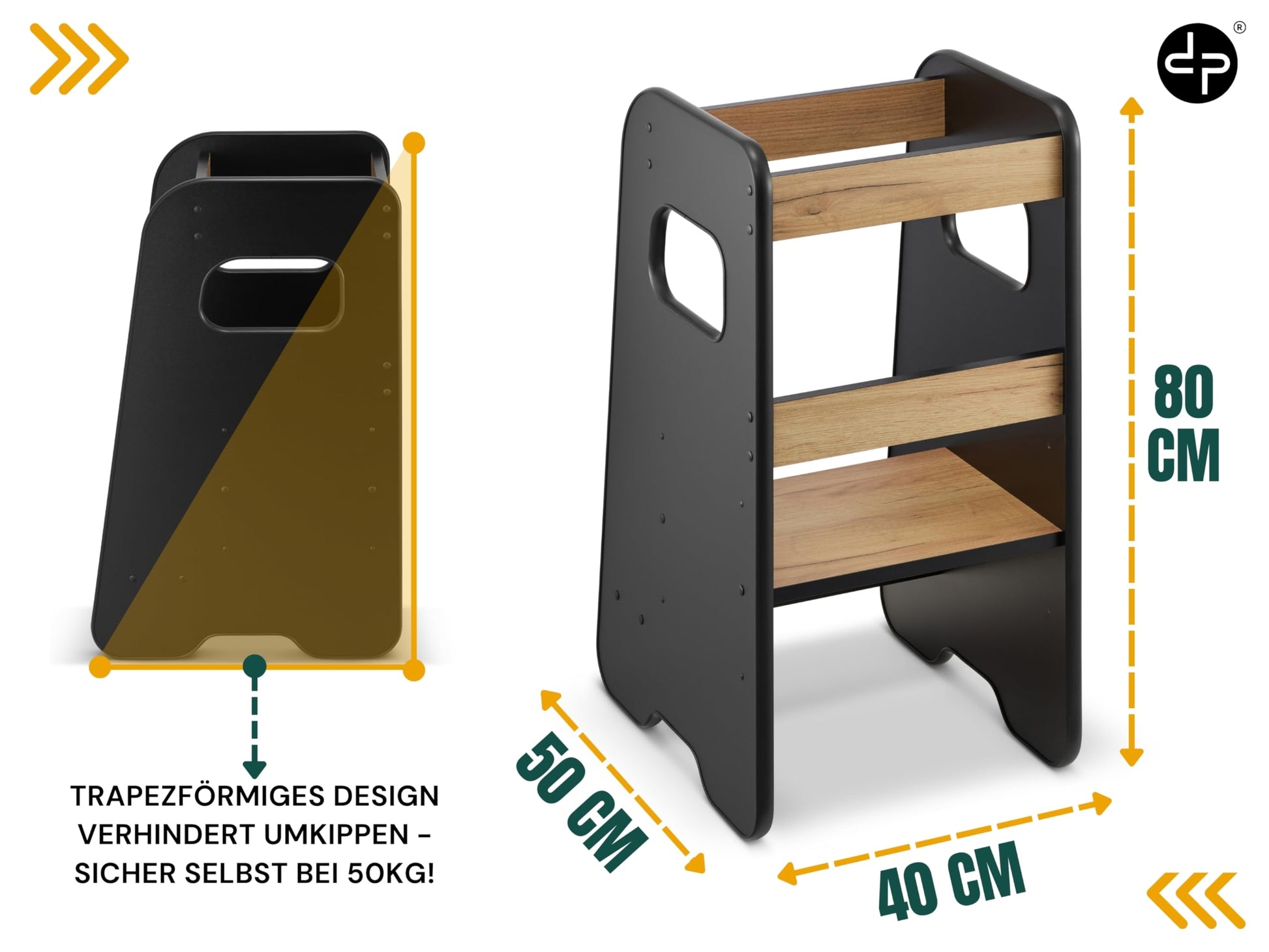 defiPad Lernturm Montessori ab 1 Jahr - Schwarz/Eiche