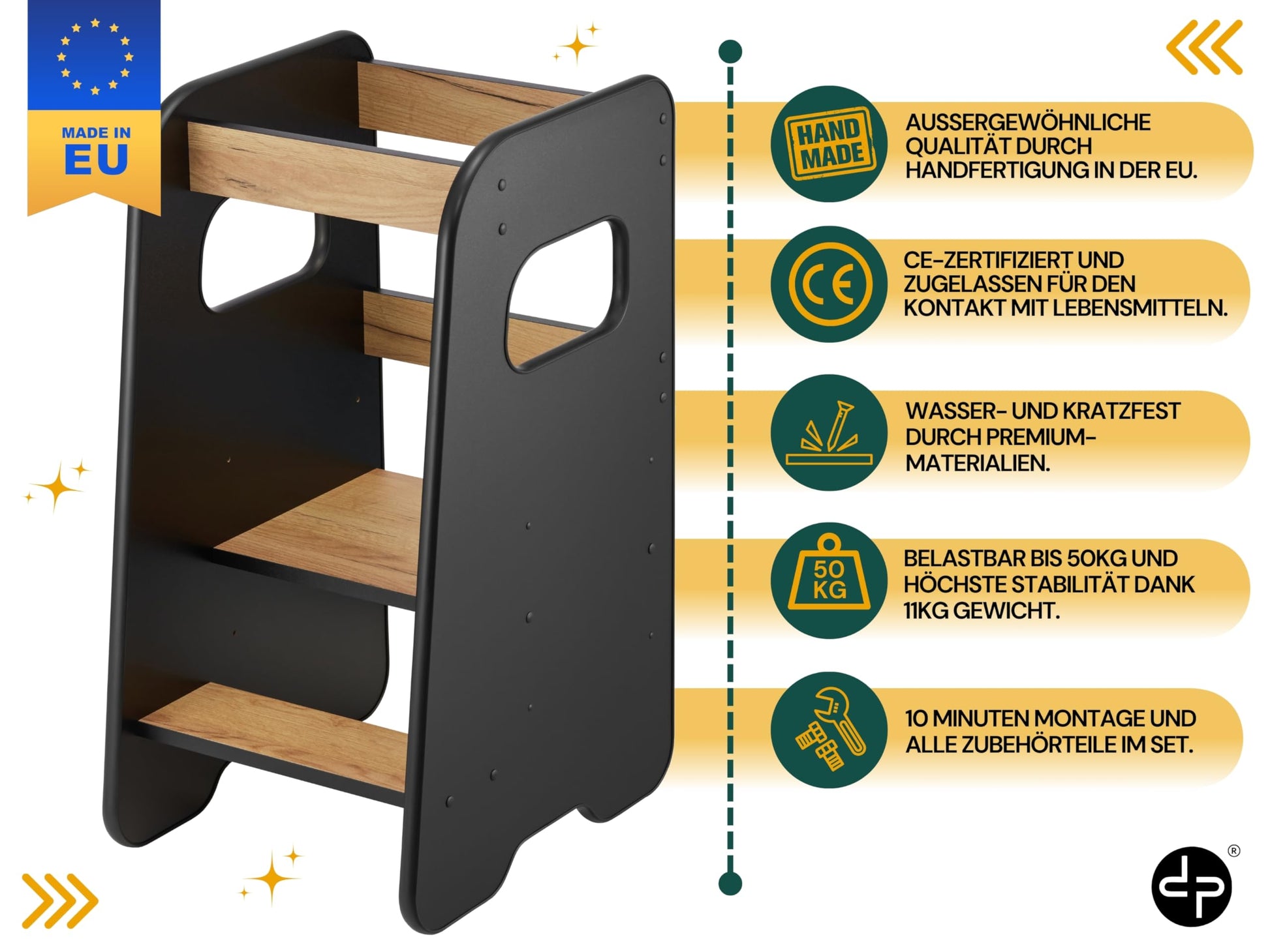 - Hygienisch & pflegeleicht: Dank der Verwendung von lebensmittelechten Materialien ist der Lernturm mühelos zu reinigen und ideal für den Einsatz in der Küche.