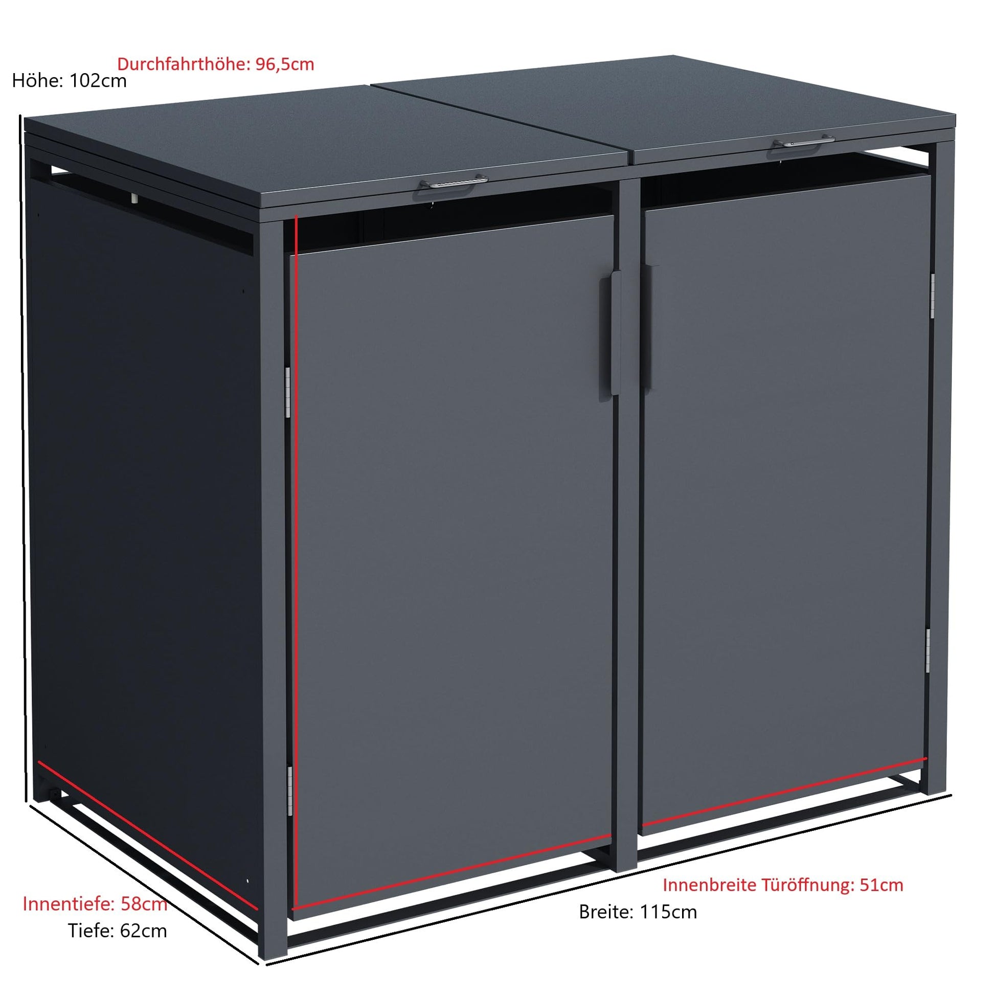 DEGAMO MÜNCHEN Mülltonnenbox 2x 120L Stahl Anthrazit