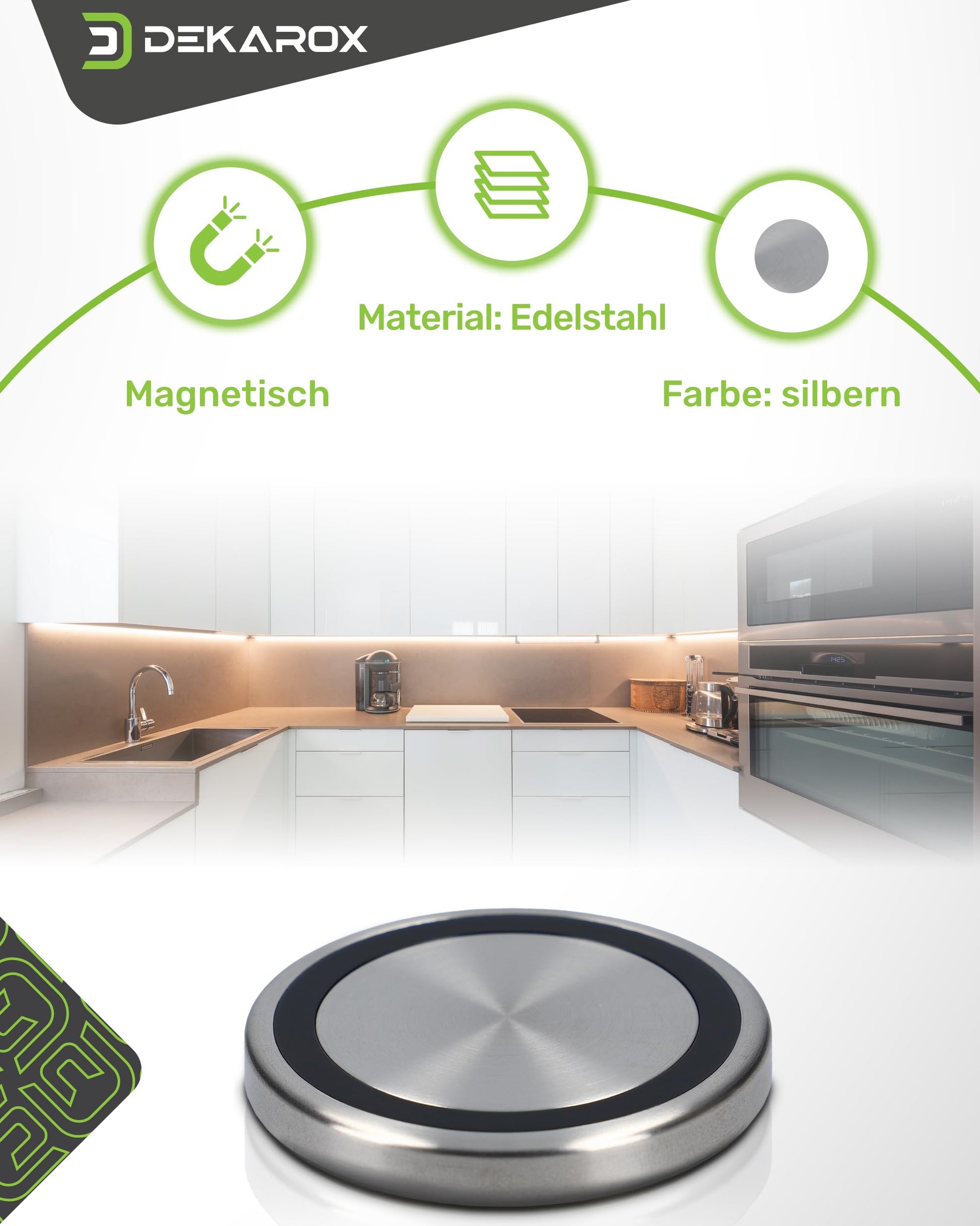 - Magnetische Haftung: Der Bedienknopf wird sicher auf der Sensorfläche des Kochfeldes gehalten und lässt sich für die Reinigung einfach abnehmen.