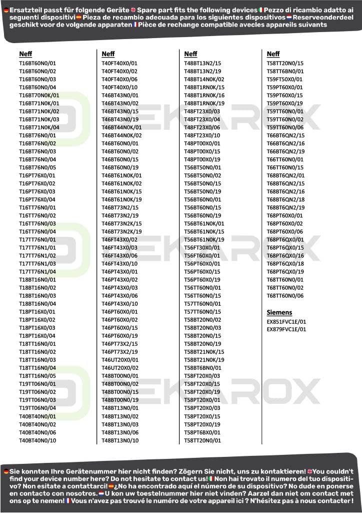 Passend für folgende Neff Modelle:
