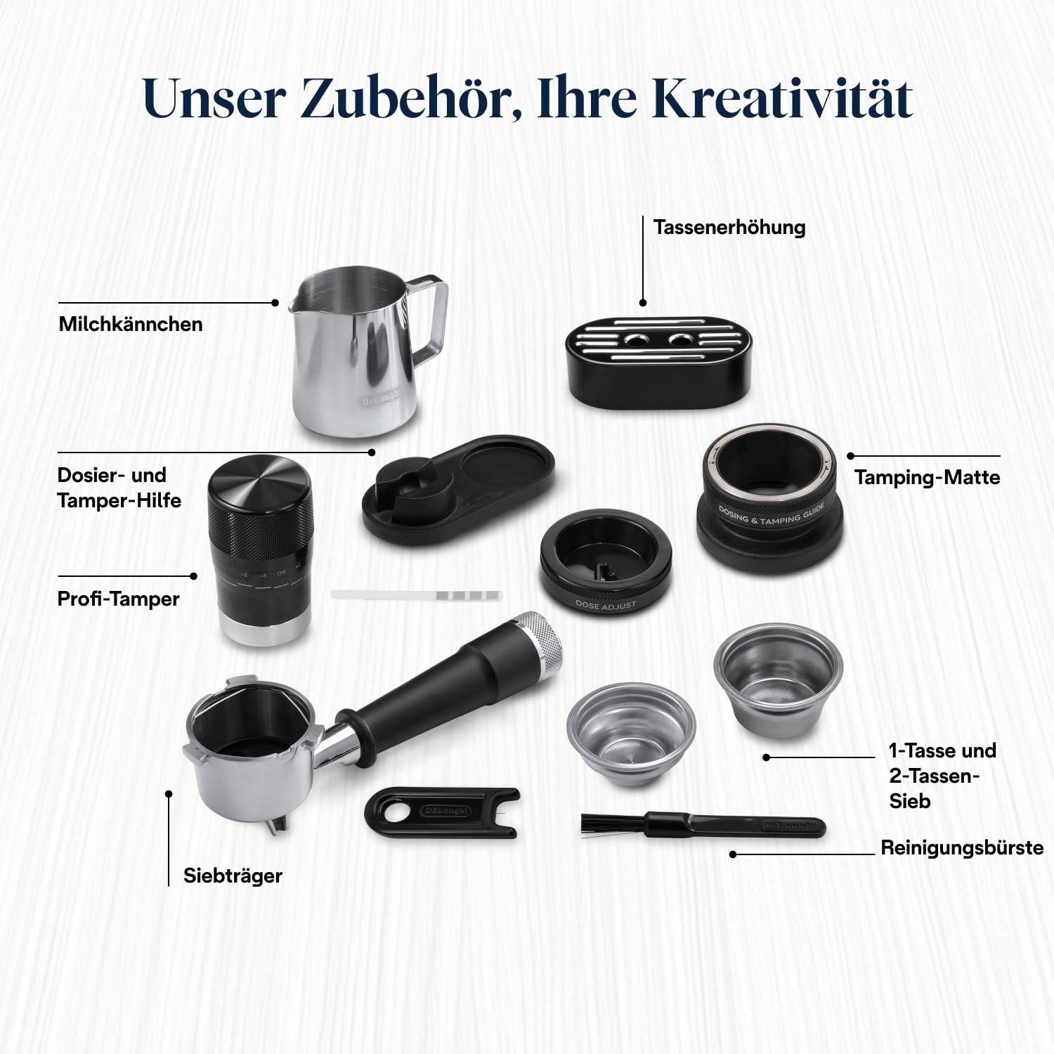 - Integrierte Tamper-Hilfe: Eine praktische Hilfe für das Dosieren und Tampen sorgt für eine einfache Handhabung und konstant perfekte Ergebnisse ohne Kaffeepulver-Verschwendung.