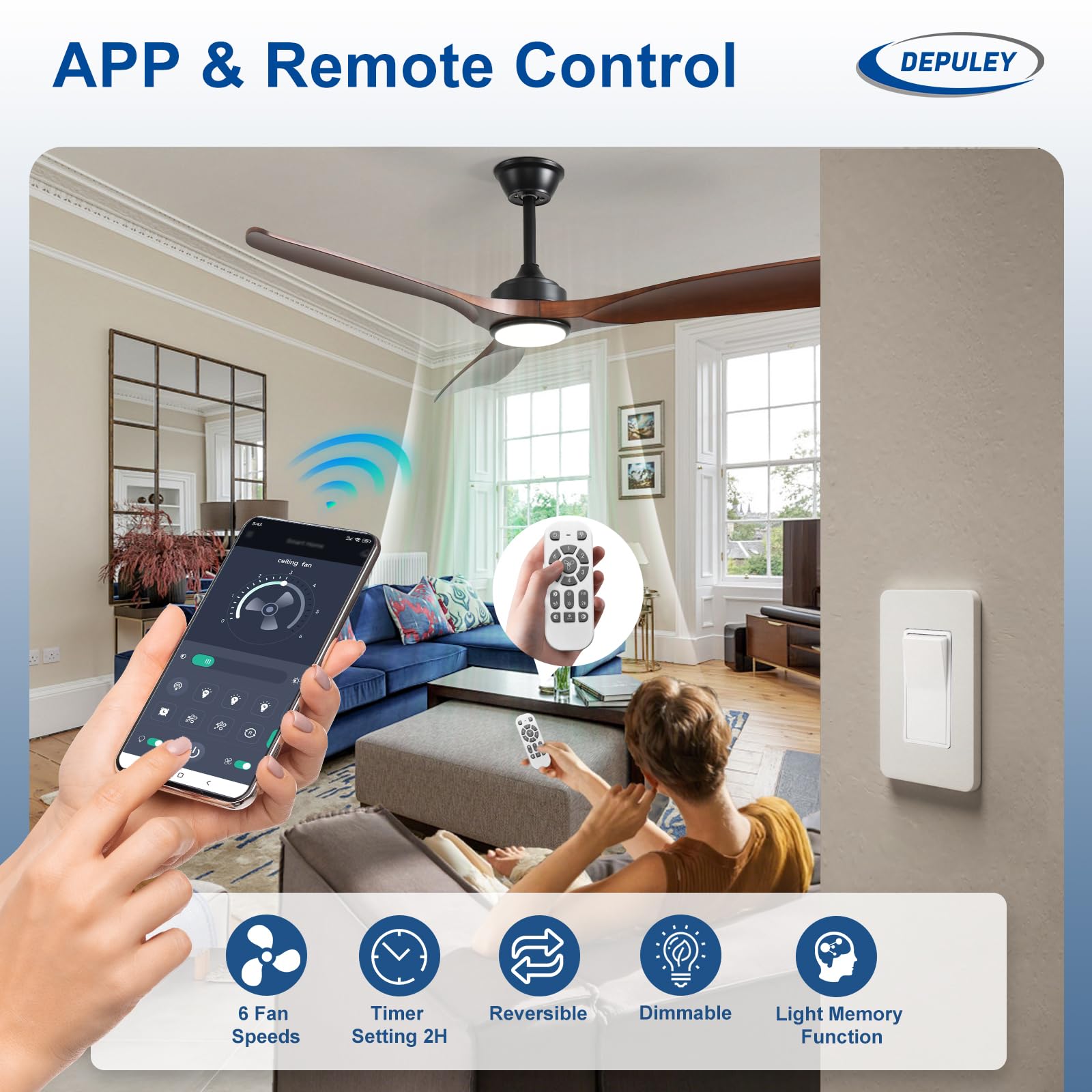 Depuley Leise Deckenventilator LED Aussen 132cm Braun App