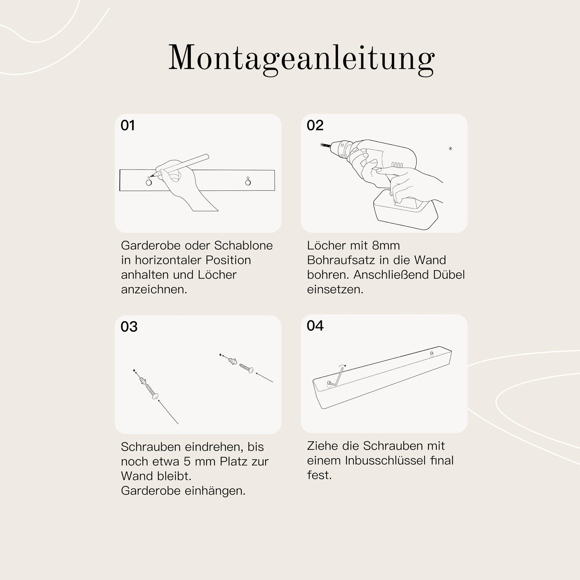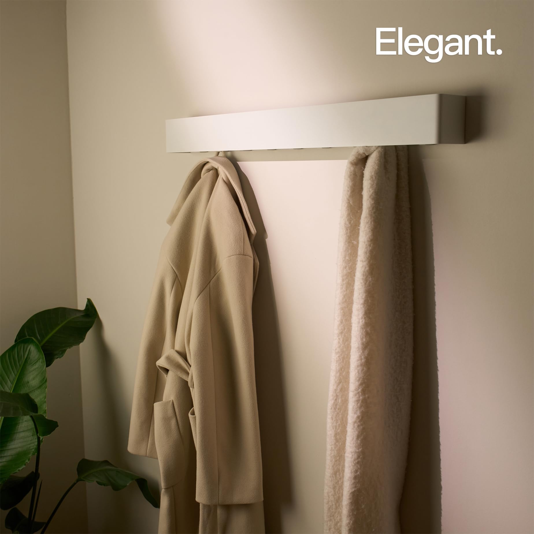 - Zeitloses Design: Die Garderobenleiste besticht durch ihre schlanke, geradlinige Form und eine minimalistische Ästhetik, die sich nahtlos in moderne Wohnkonzepte einfügt.