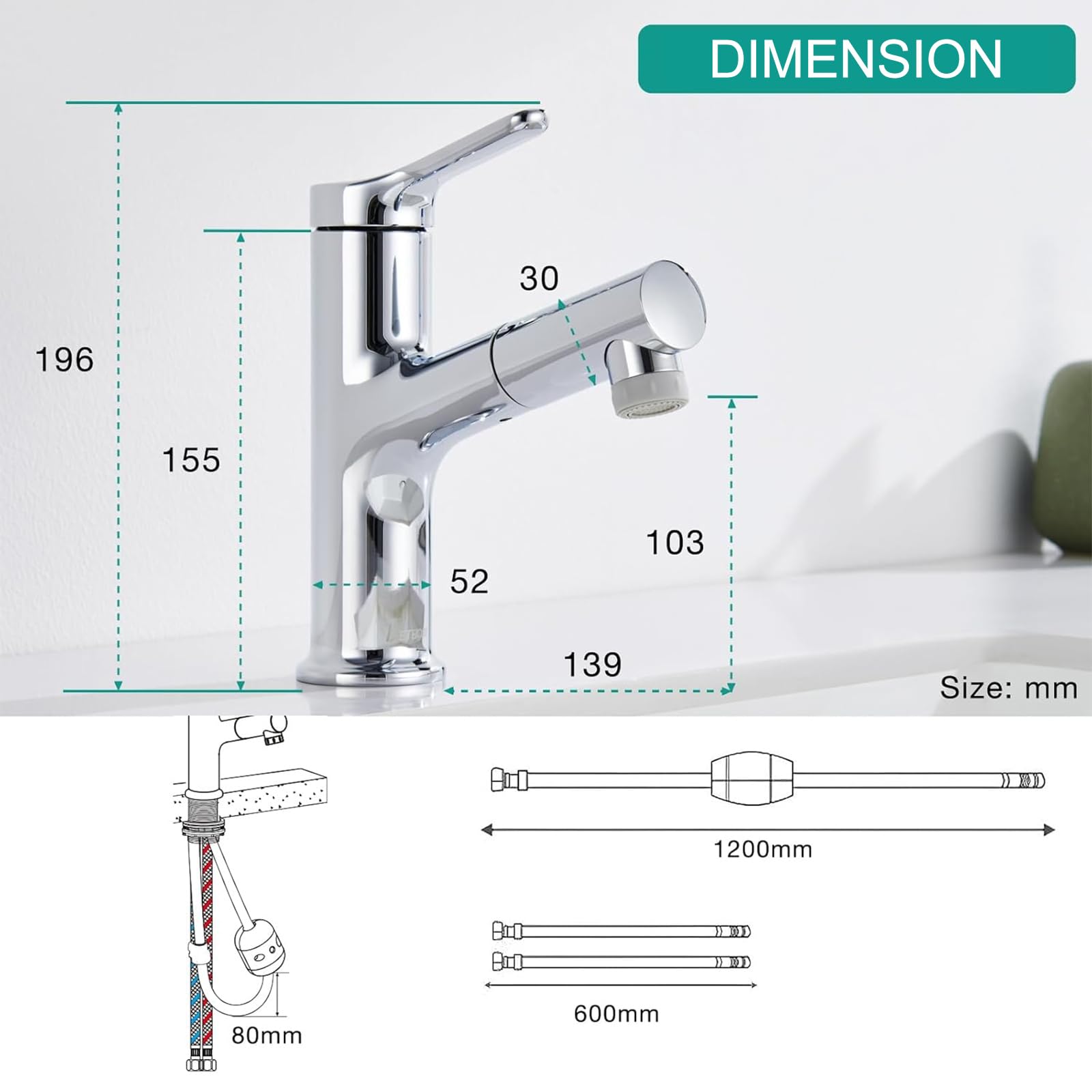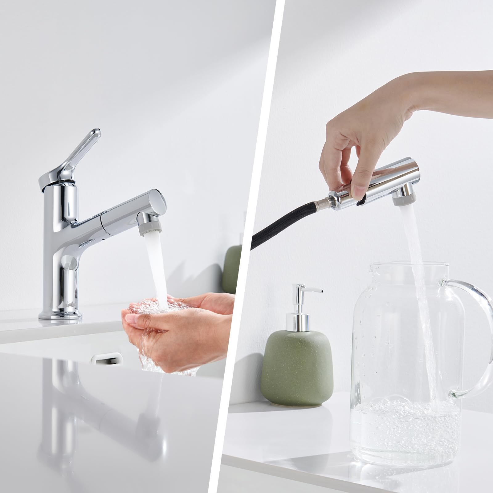 Die bis zu 60 cm ausziehbare Brause erweitert Ihren Aktionsradius enorm. Sie erleichtert das Haarewaschen direkt im Waschbecken, die schnelle Reinigung des Beckens selbst und sogar das Waschen von Haustieren, was den Alltag deutlich komfortabler macht.