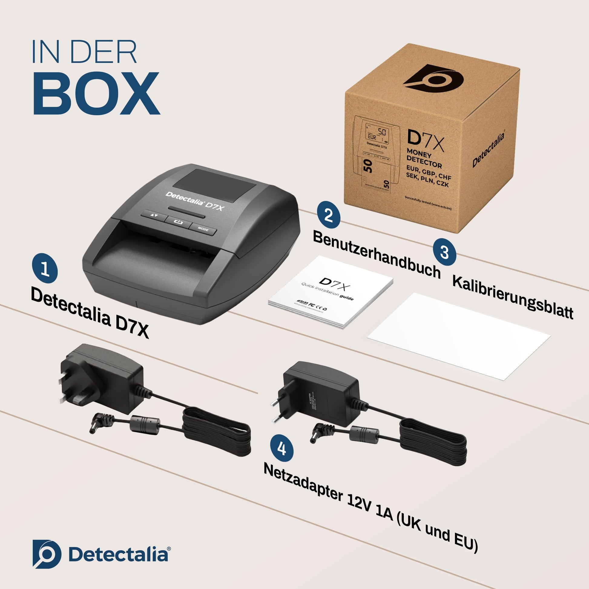 Detectalia D7X Falschgeldprüfer Zählmaschine – für Euro, CHF, GBP