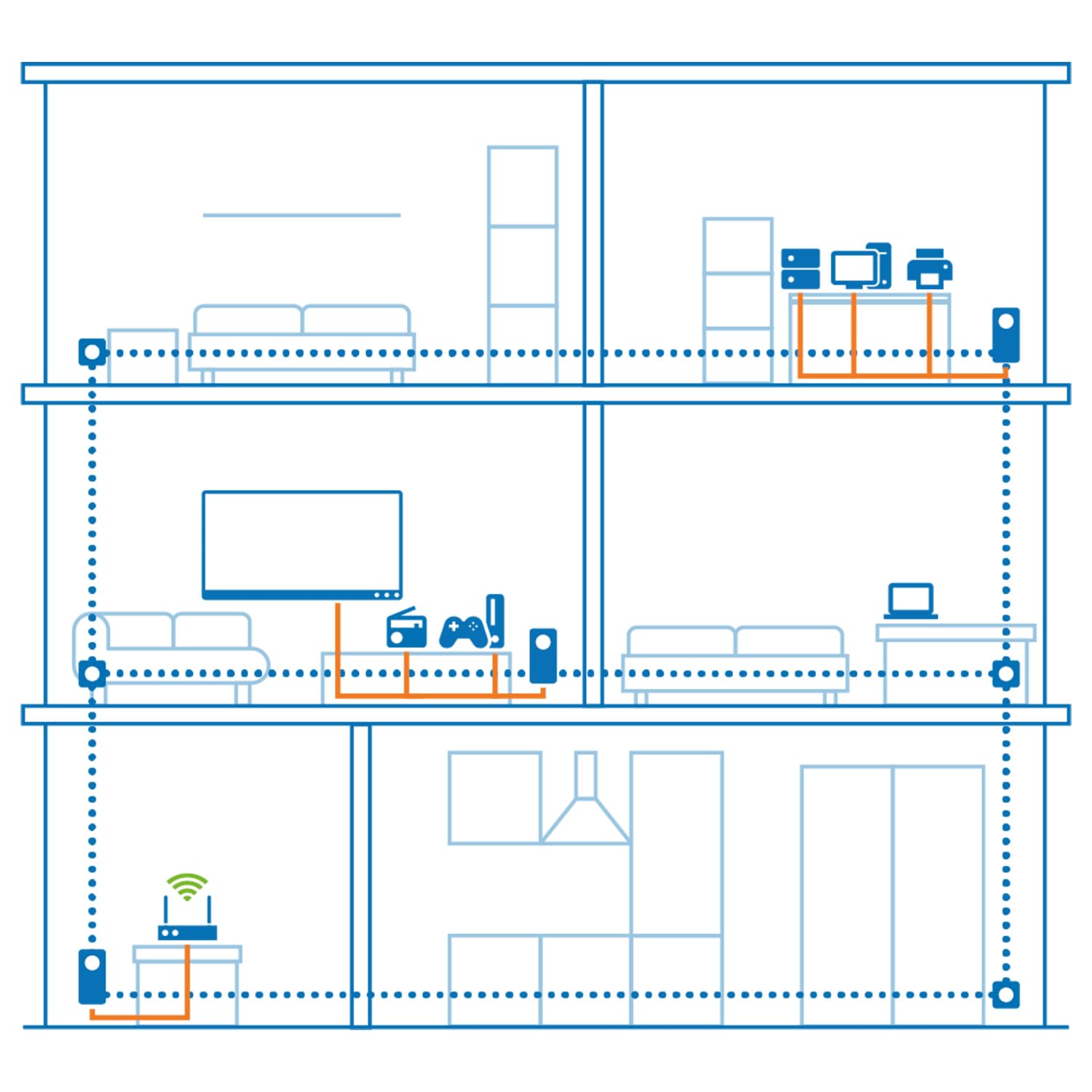 Erweitern Sie Ihr Heimnetzwerk unkompliziert und bringen Sie Highspeed-Internet über die Stromleitung genau dorthin, wo Sie es benötigen – ideal für Ihre Multimedia-Ecke.